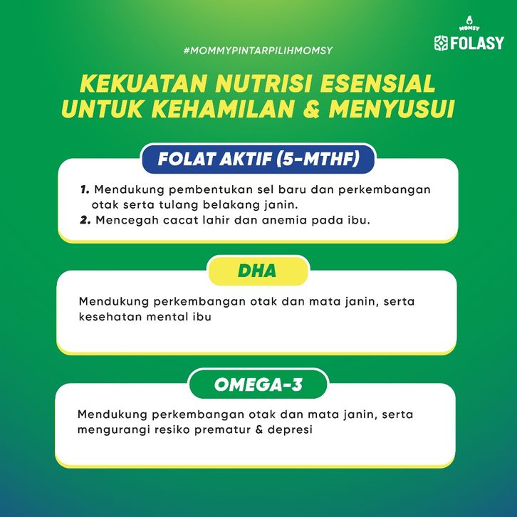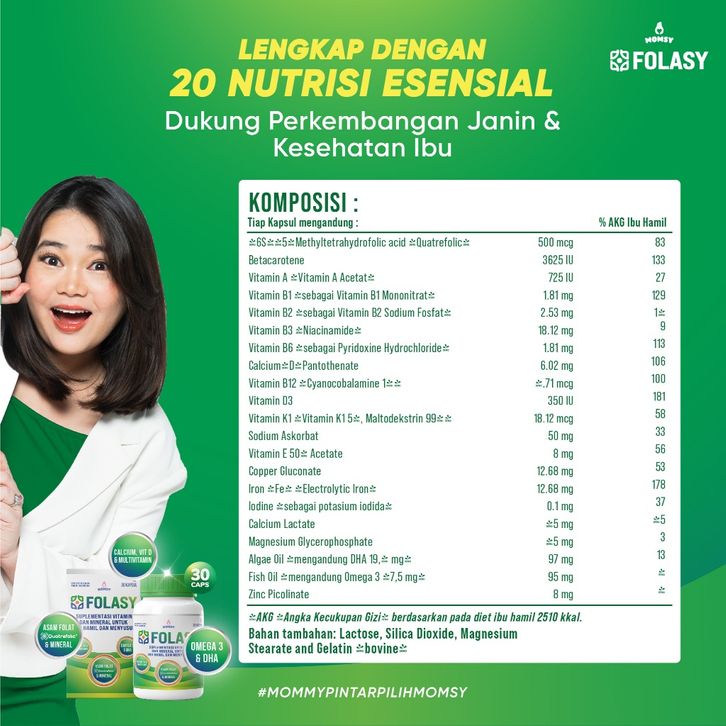 NUTRISI ESENSIAL BUMIL FOLASY FOLAT AKTIF LENGKAP DENGAN 20 KALSIUM MAGNESIUM DHA OMEGA 3 VITAMIN A-K