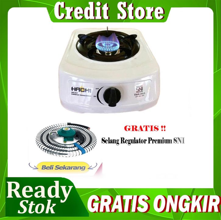CREDIT STORE KOMPOR ORIGINAL Kompor Gas 1 Tungku Hachi Warna Putih Free Selang dan Regulator TERBARU