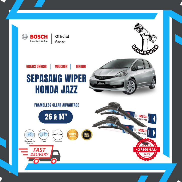 Wiper Mobil Honda Jazz 2008-On Frameless Clear Advantage 26 dan 14 Inci Bosch Sepasang