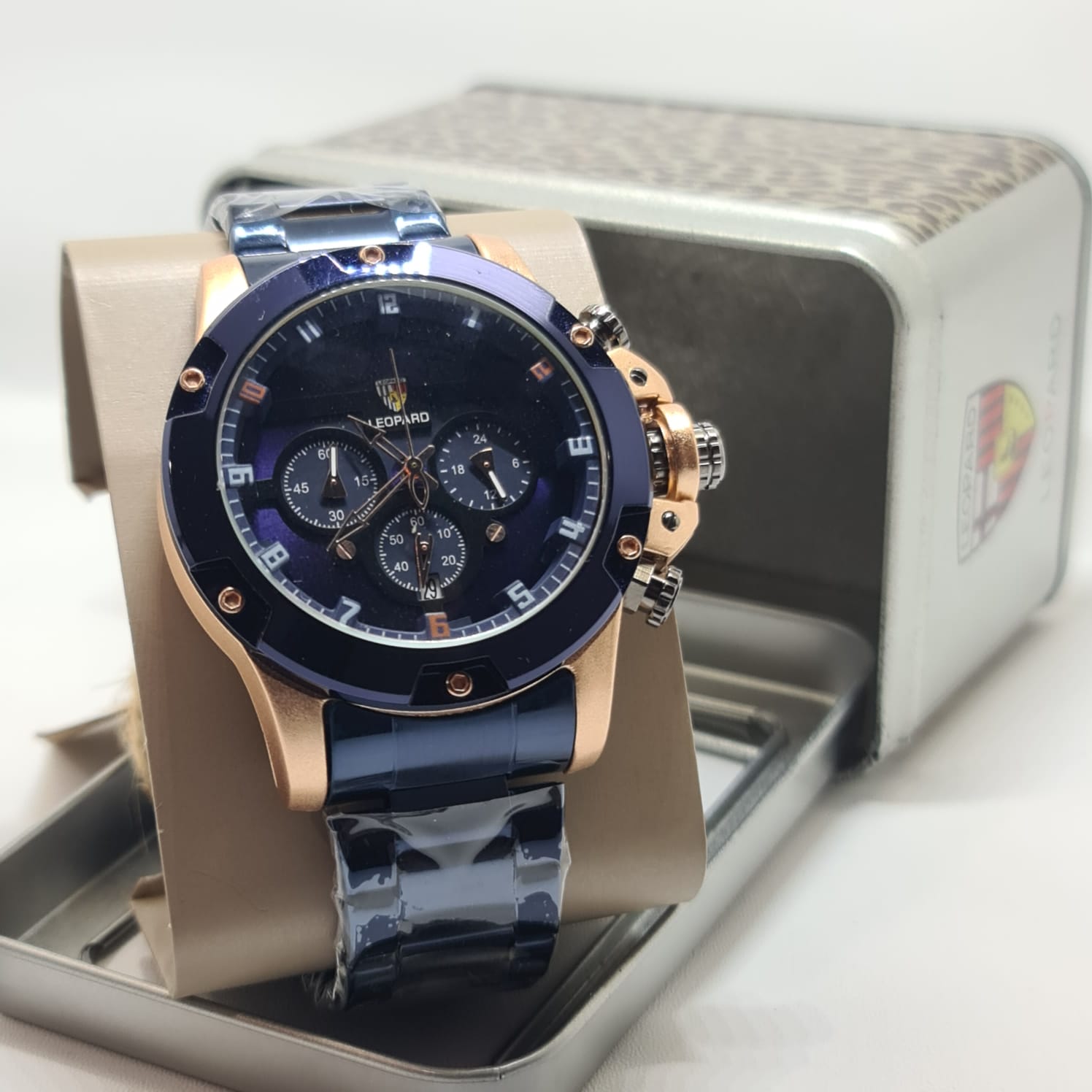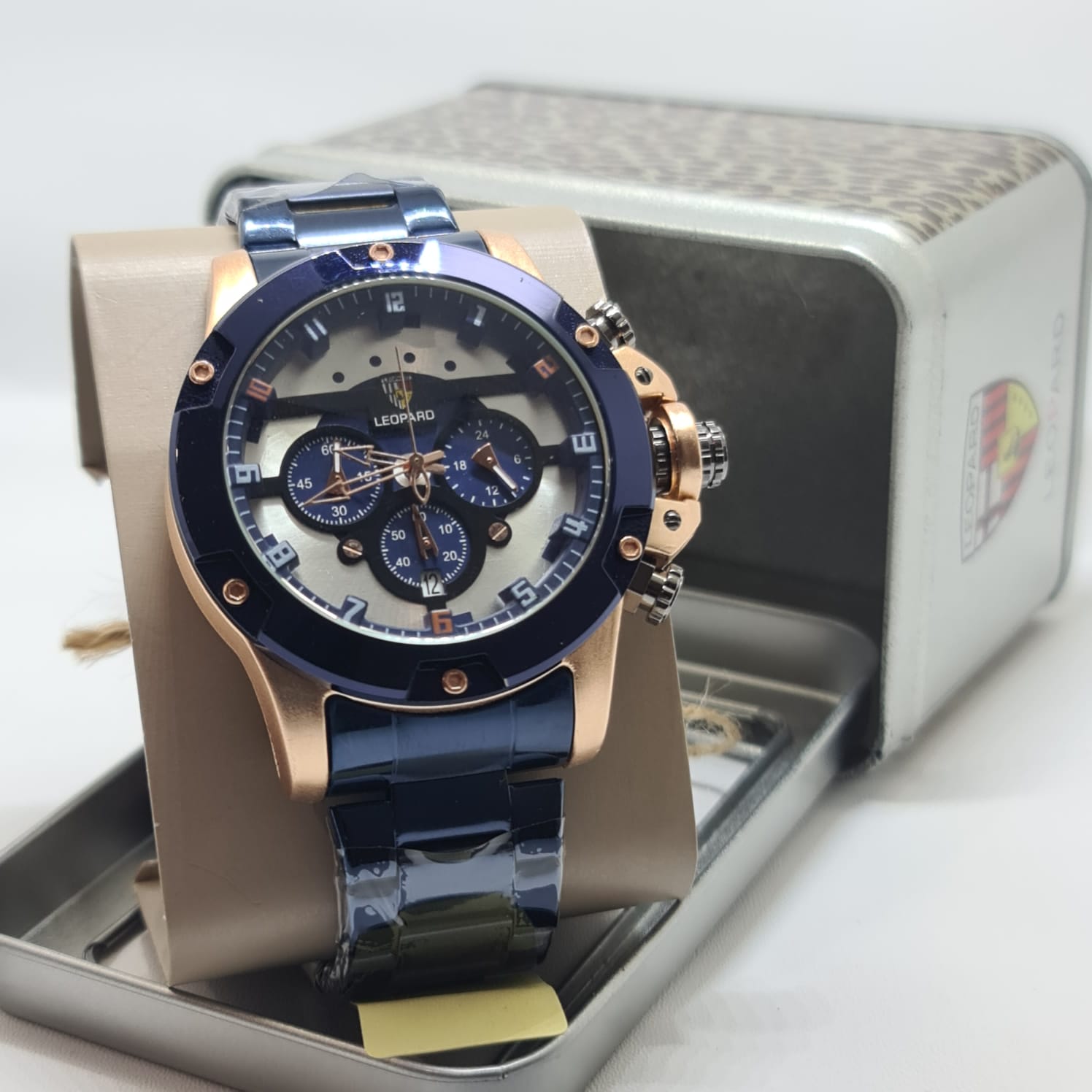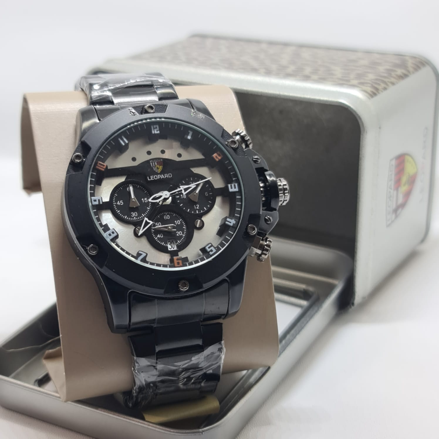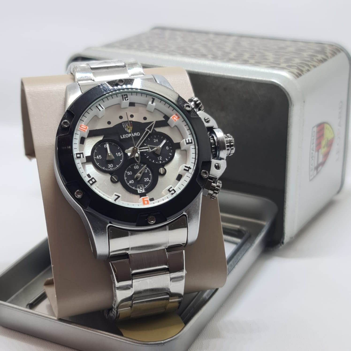 FREE ONGKIR - Jam Tangan Pria Original Leopard L81451SV Chronograph Tanggal Aktif Tali Rantai Free Box Original