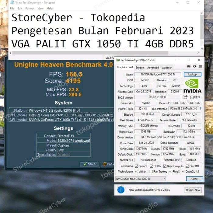 VGA PALIT GTX 1050 Ti DDR5 MULUS ORI GTX1050Ti GTX1050 Ti MURAH BEKAS