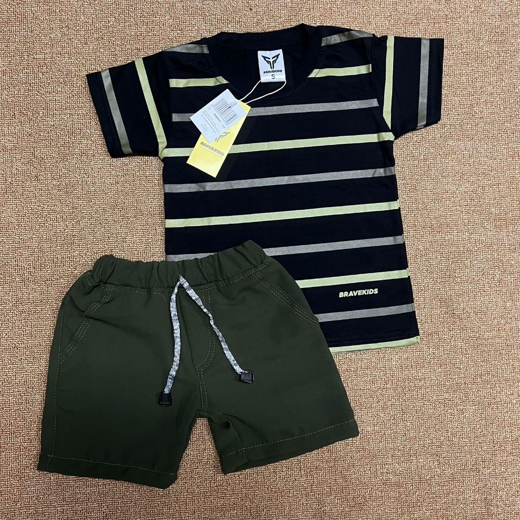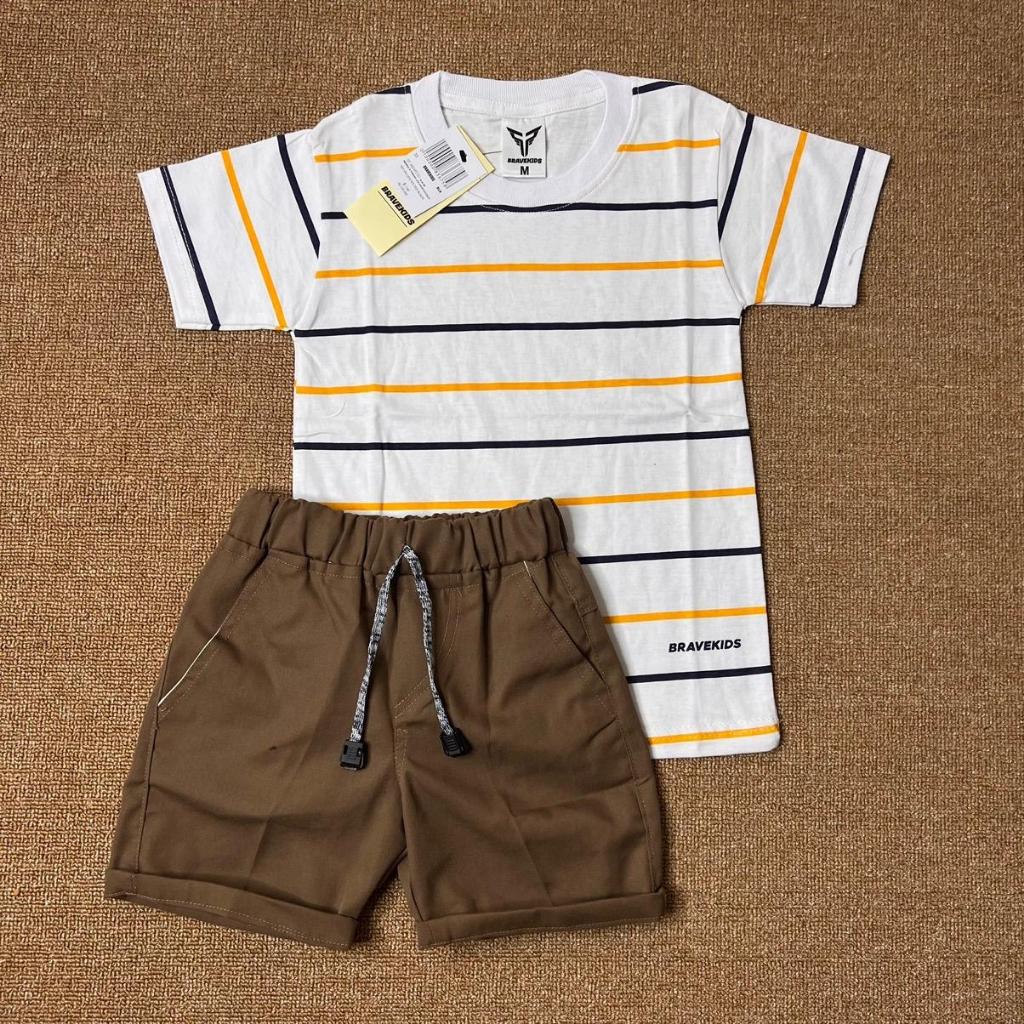 BRAVEKIDS - BROADSTRIPE SETELAN ANAK KAOS DAN CELANA COTTON COMBED 24S SABLON PLASTISOL