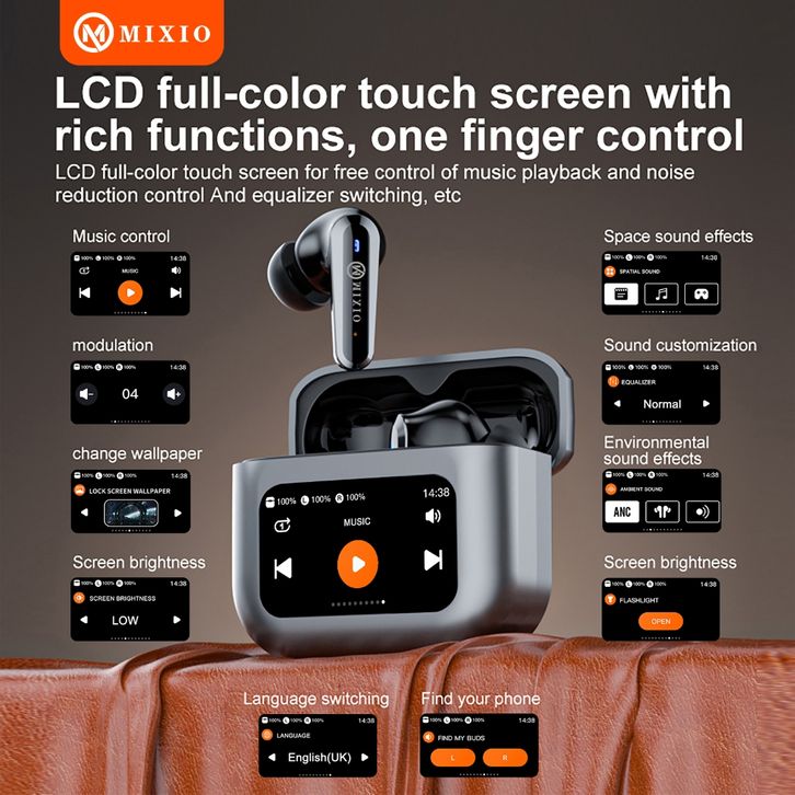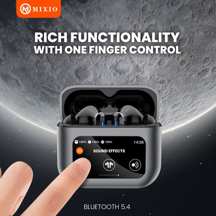 [Star] EARPHONE BLUETHOOTH / MIXIO MZ-10 LCD ANC TWS BLUETOOTH HEADSET / EARPHONE TOUCH SCREEN V5.4 SMART SCREEN ACTIVE