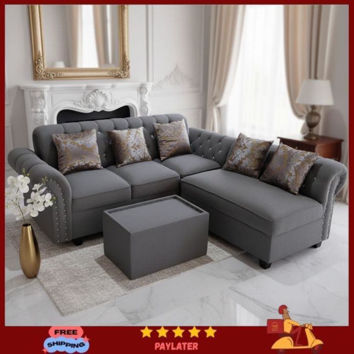Sofa Ruang Tamu Minimalis Modern L Putus Kancing Beludru