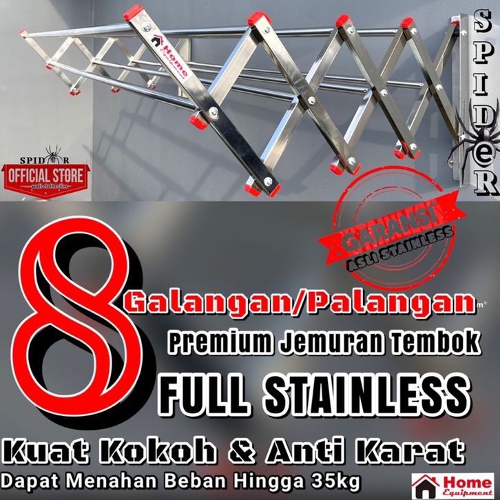JEMURAN DINDING LIPAT STAINLES STEEL TEMPEL PREMIUM UKURAN 1 M 125 M 1.5 M 1.7 M 2 M 8 PALANG KUAT KOKOH ANTI KARAT