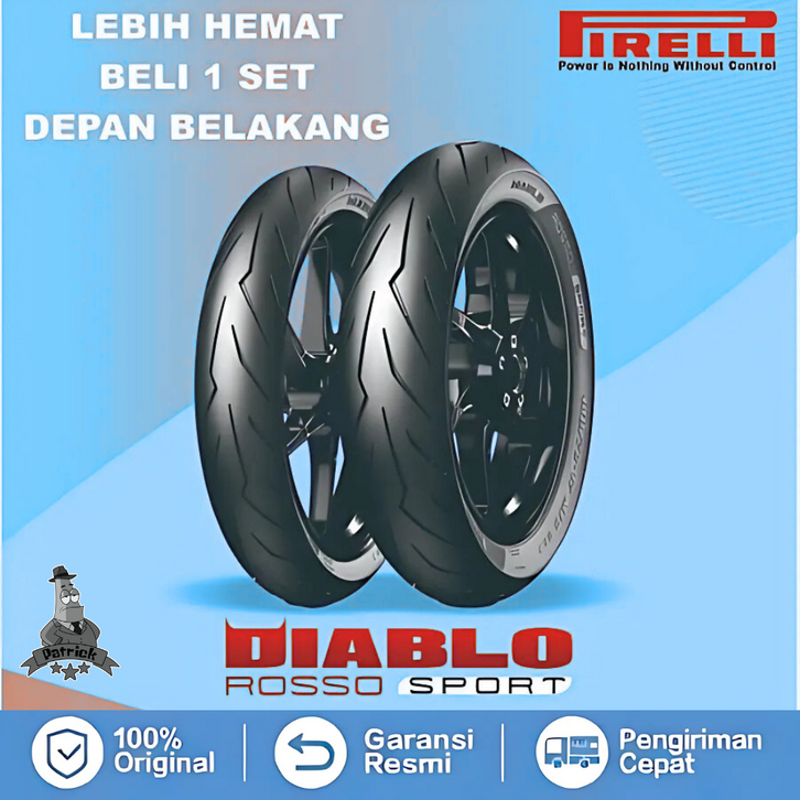 PAKET BAN PIRELLI DIABLO ROSSO SPORT RING 17 90/80 MOTOR DEPAN BELAKANG SEPASANG TUBELESS TUBLES BEAT VARIO CORSA 2 14