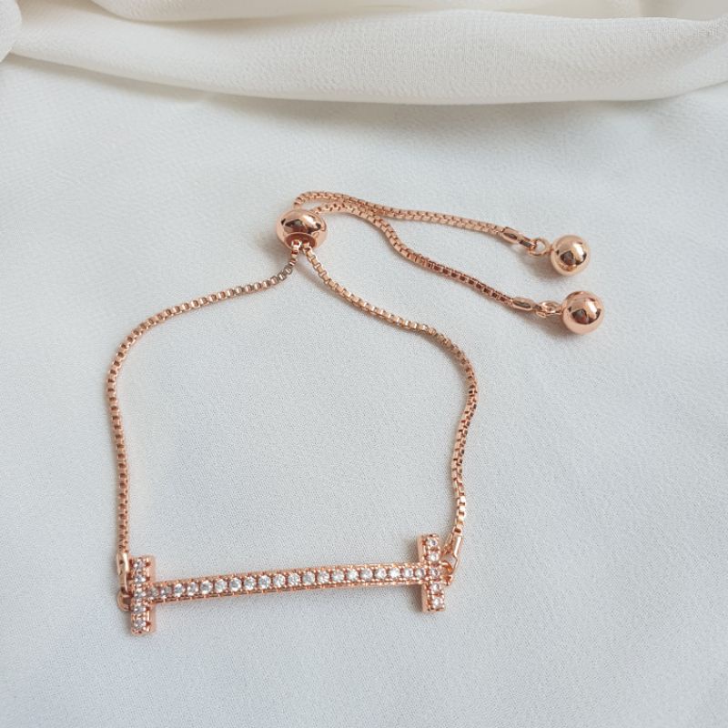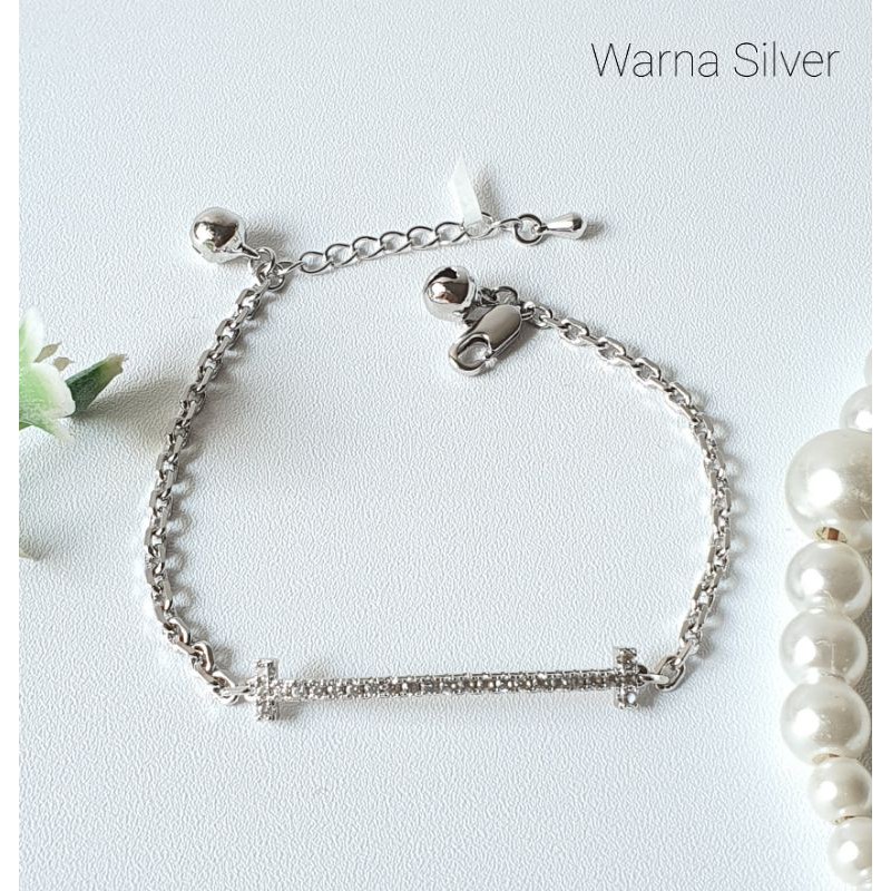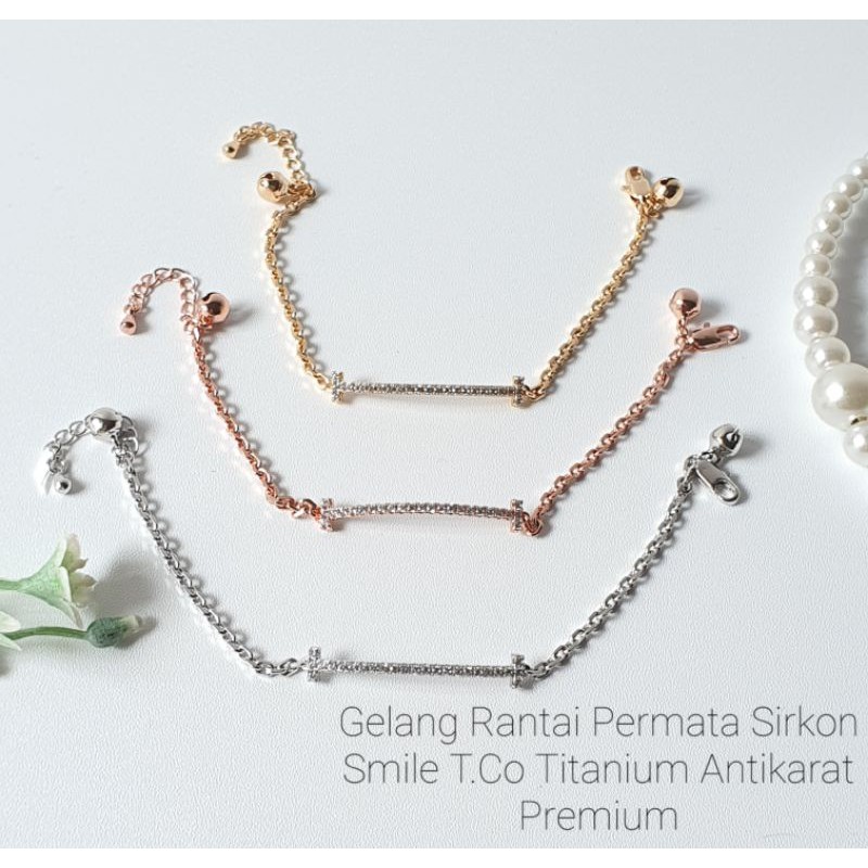 Gelang Titanium Rantai Smile TFc Permata Sirkon Halus Premium | Titanium Antikarat