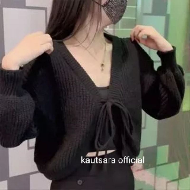 Bolero Rajut Wanita Oversize Cardigan Crop Outer 7 Gate/Sweater tali model terbaru/ Atasan Wanita Tali Serut Kekinian