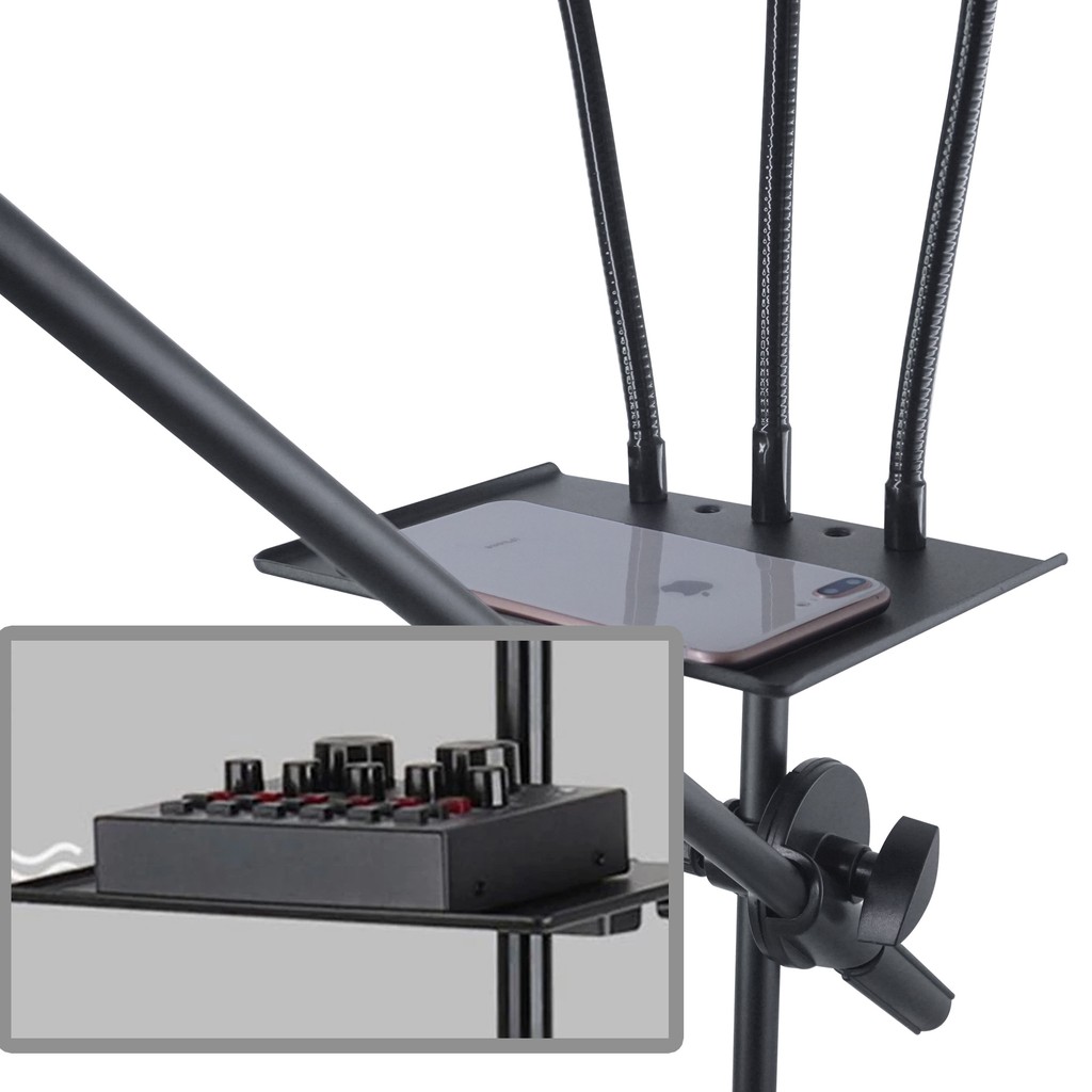 STAND MICROPHONE HOLDER 5 IN 1 CONDENSER STAND HP + TRAY + LED STANDING MIKROFON ALAT KONTEN