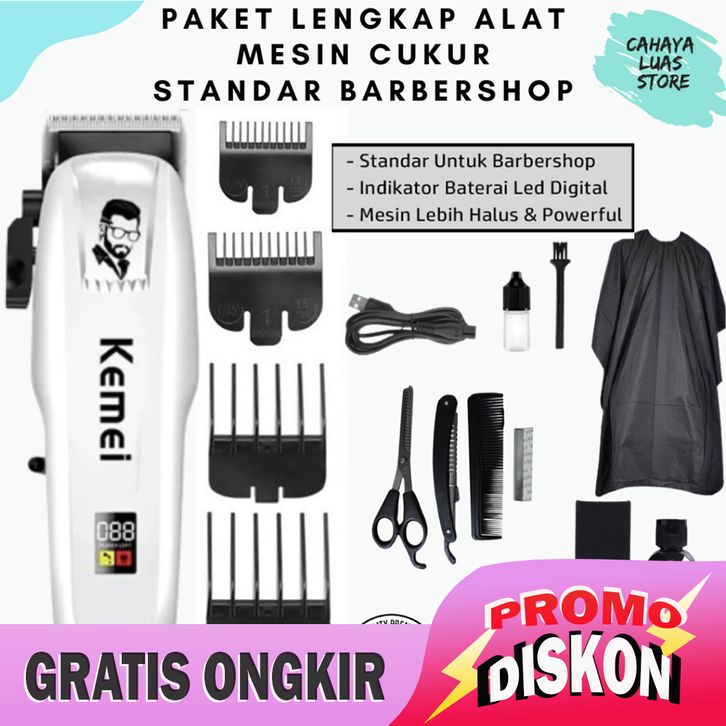 [Mall] BARU+ CL MESIN CUKUR RAMBUT CAS PROFESIONAL PAKET BARBERSHOP KEMEI INDIKATOR BATERAI LED DIGITAL ORIGINAL