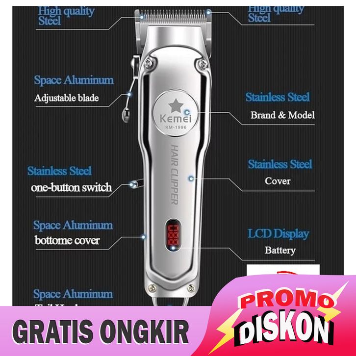 [Mall] BARU+ CUKURAN KEMEI KM 1996 LED ELECTRIC HAIR CLIPPER PROFESSIONAL RECHARGEABLE CUKUR CHARGE CAS