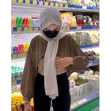 Outer Crop Top Yura tangan balon bahan Rajut