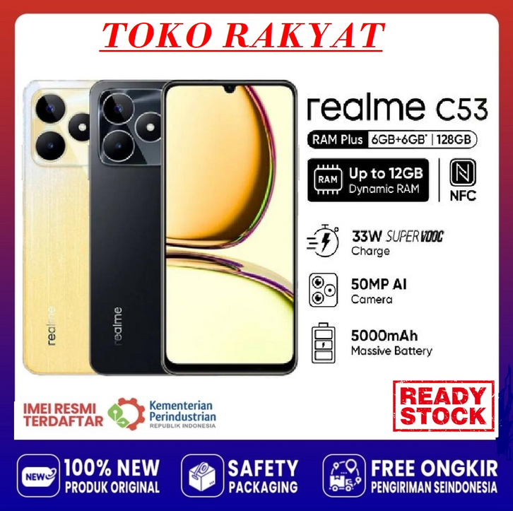 (BEBAS ONGKIR) Hp REALME C53 RAM 6+128GB | Unisoc Tiger T610 | Camera 50MP | 5000mAh Batery