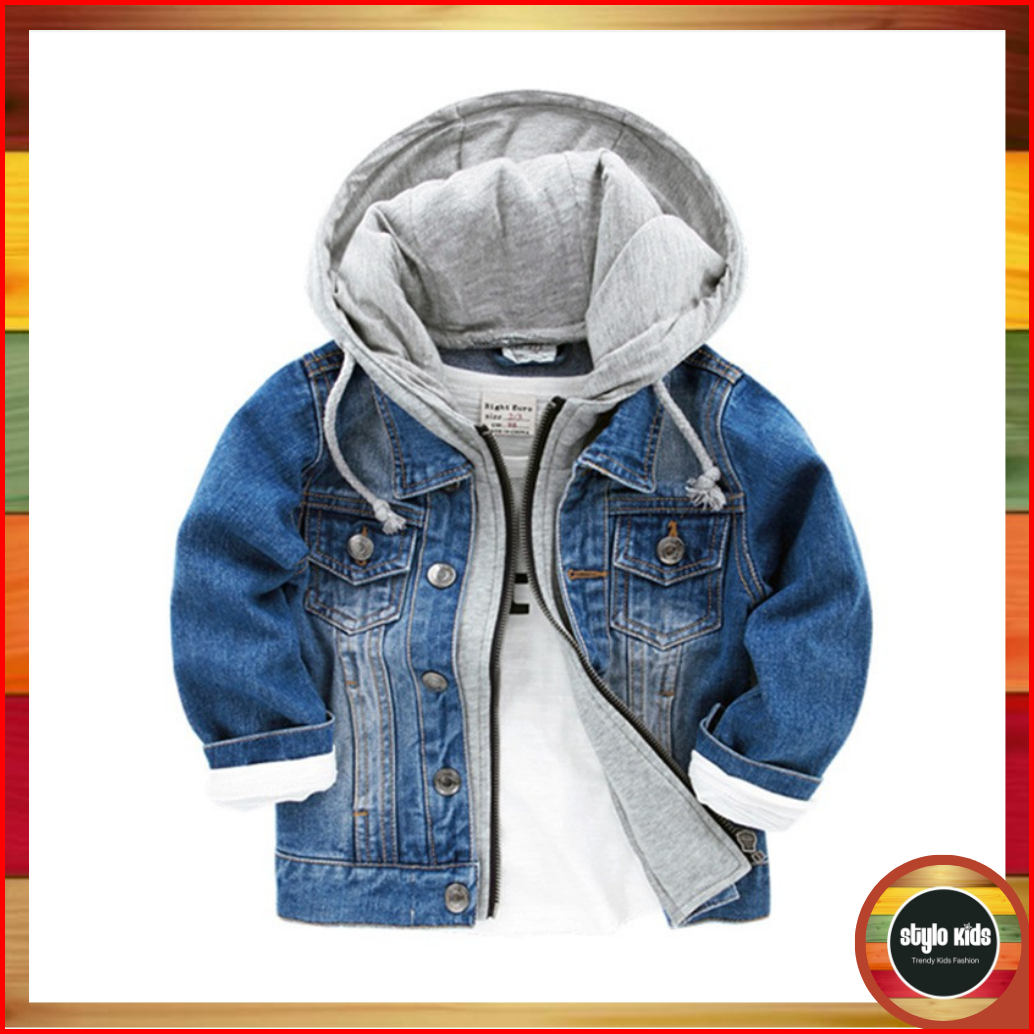 Stylokids Jacket Hooded Denim Anak Laki-laki Warna Biru Usia 2-8 Tahun