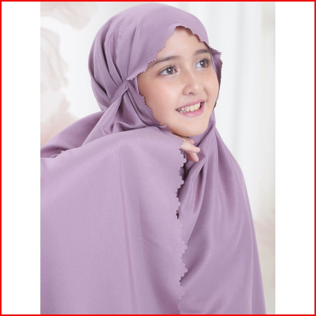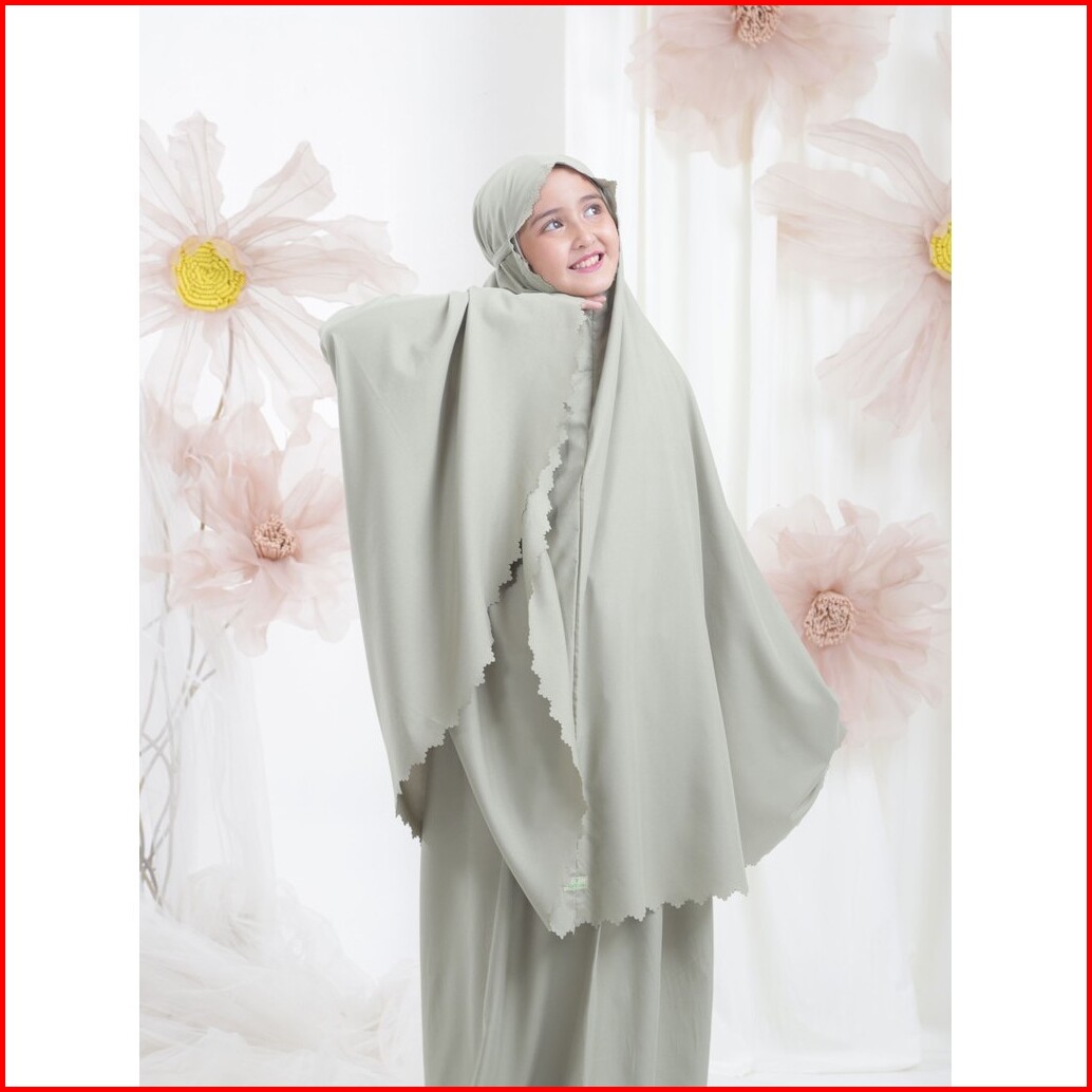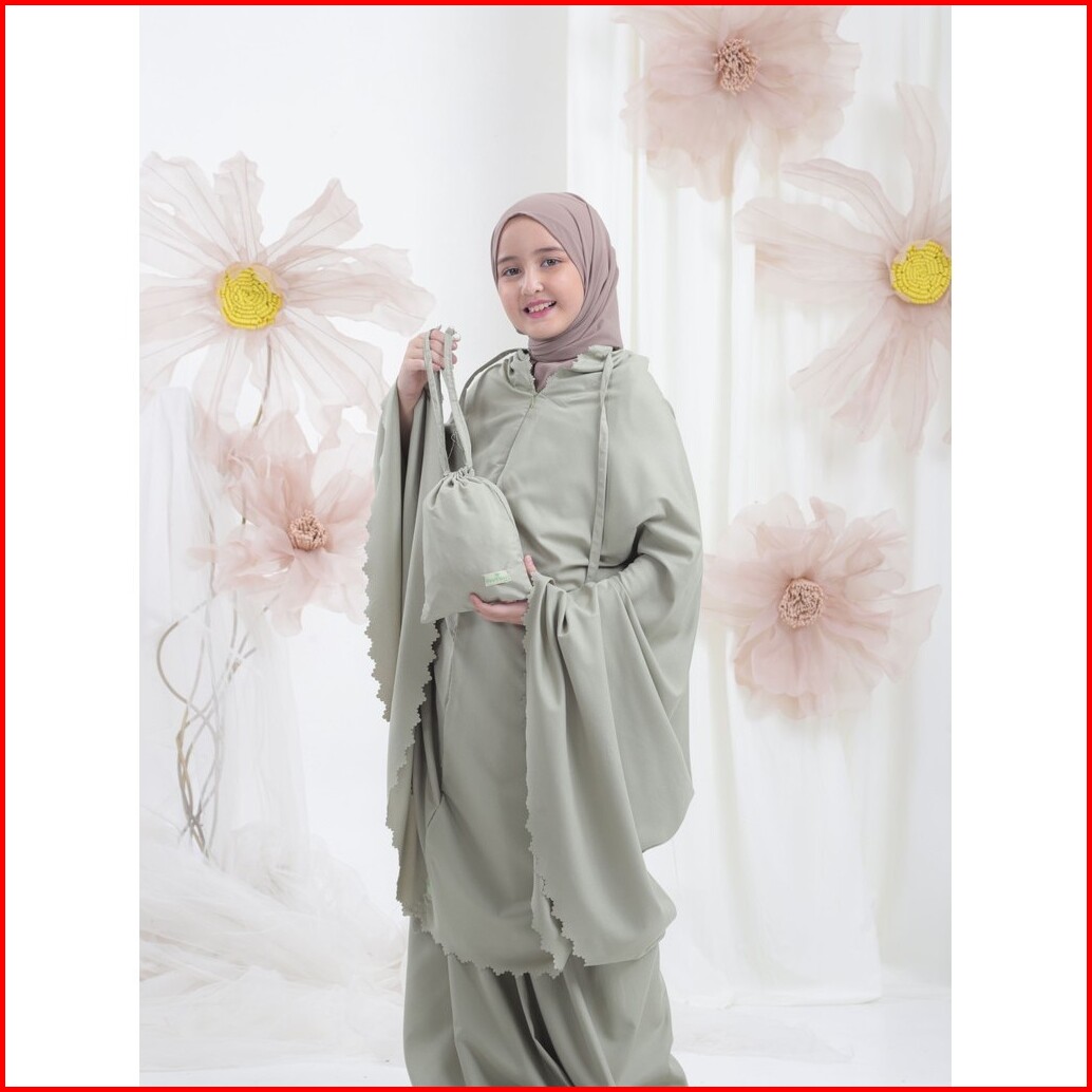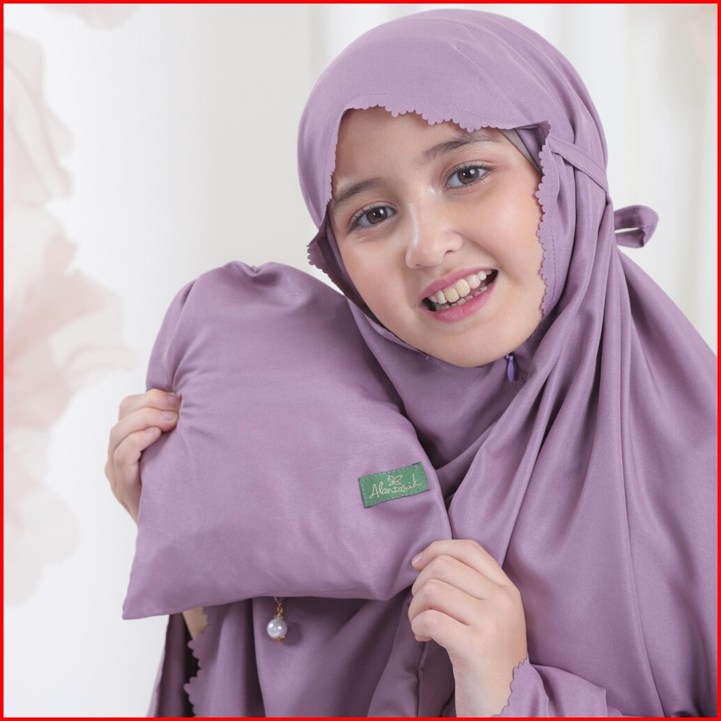 Alantasik Mukena Tyas Anak Polos Travel Mini 6-14thn 2in1 Resleting Dagu Finishing Lasercut
