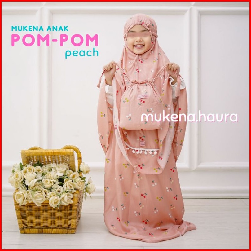 Mukena Anak 2in1 Pompom Rayon Resleting Dagu