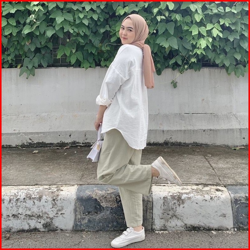 Kemeja Over Size Linen Wanita Terlaris Linen Shirt Olivia Shirt Atasan Wanita Lengan Panjang Kemja Trend