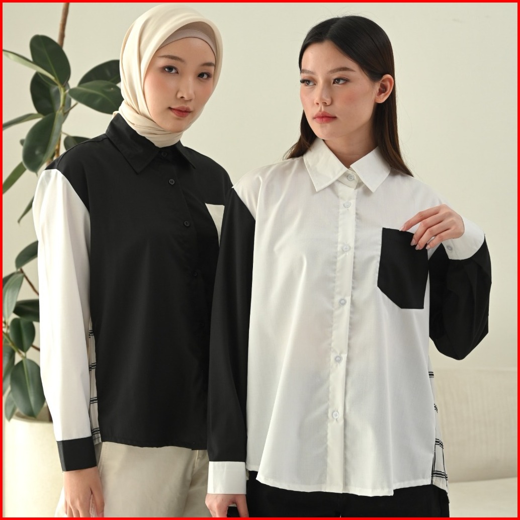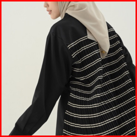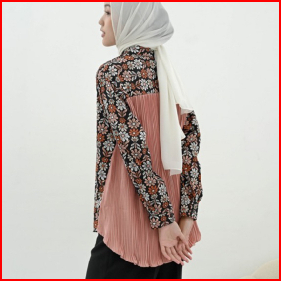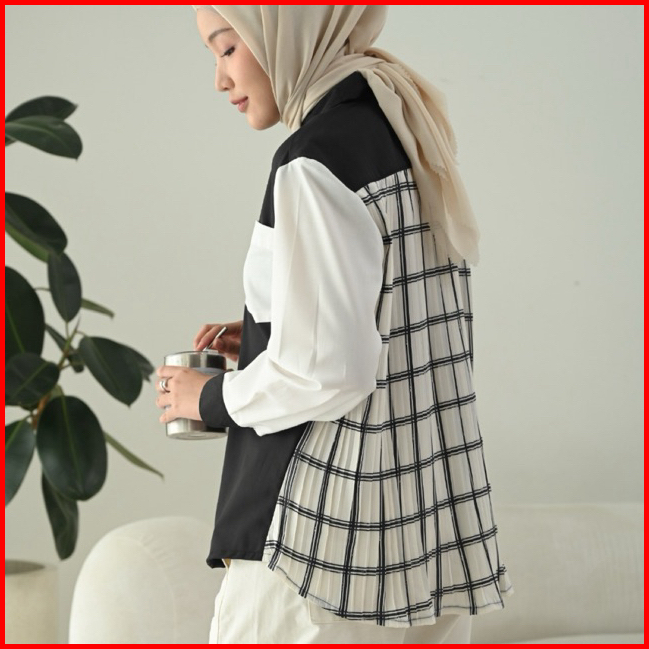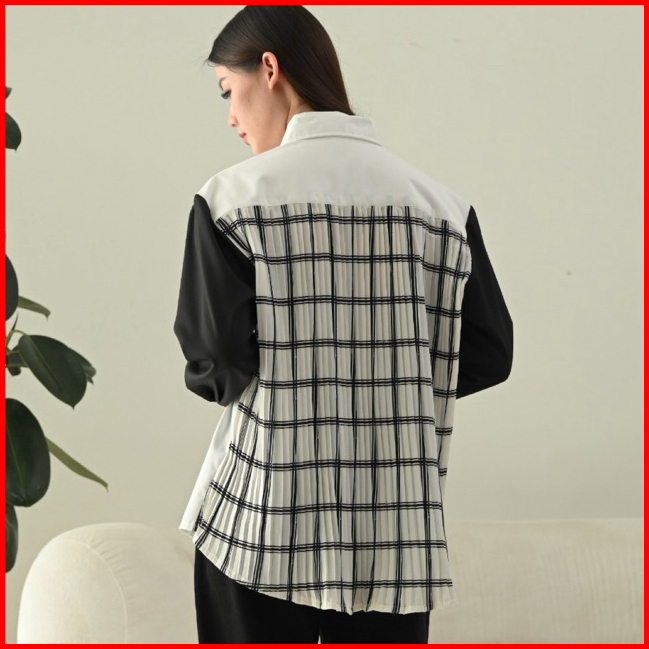 Dawnblissco Plise Pleats Oversized Shirt Kemeja Kombinasi Bahan Plisket Kemeja Lengan Panjang