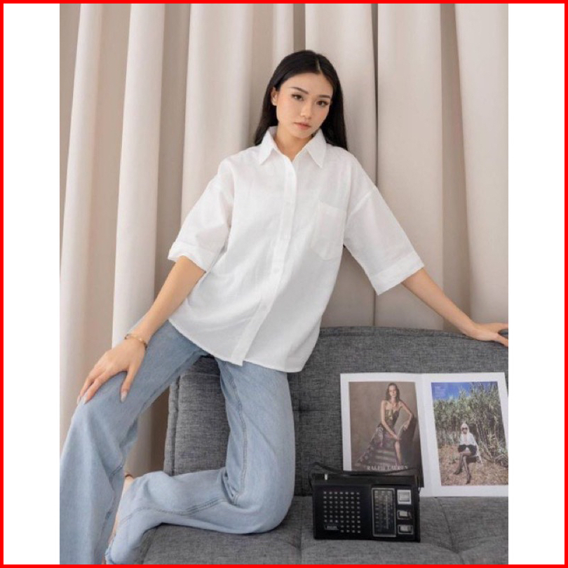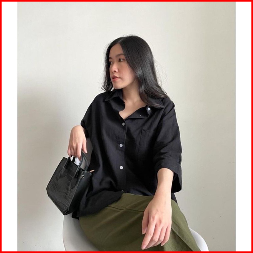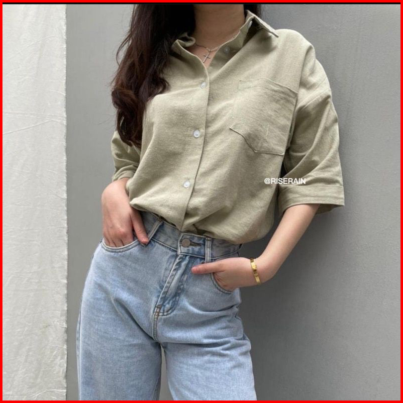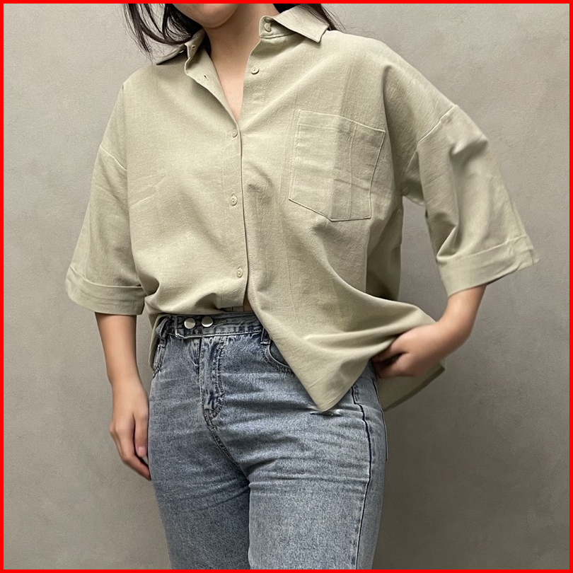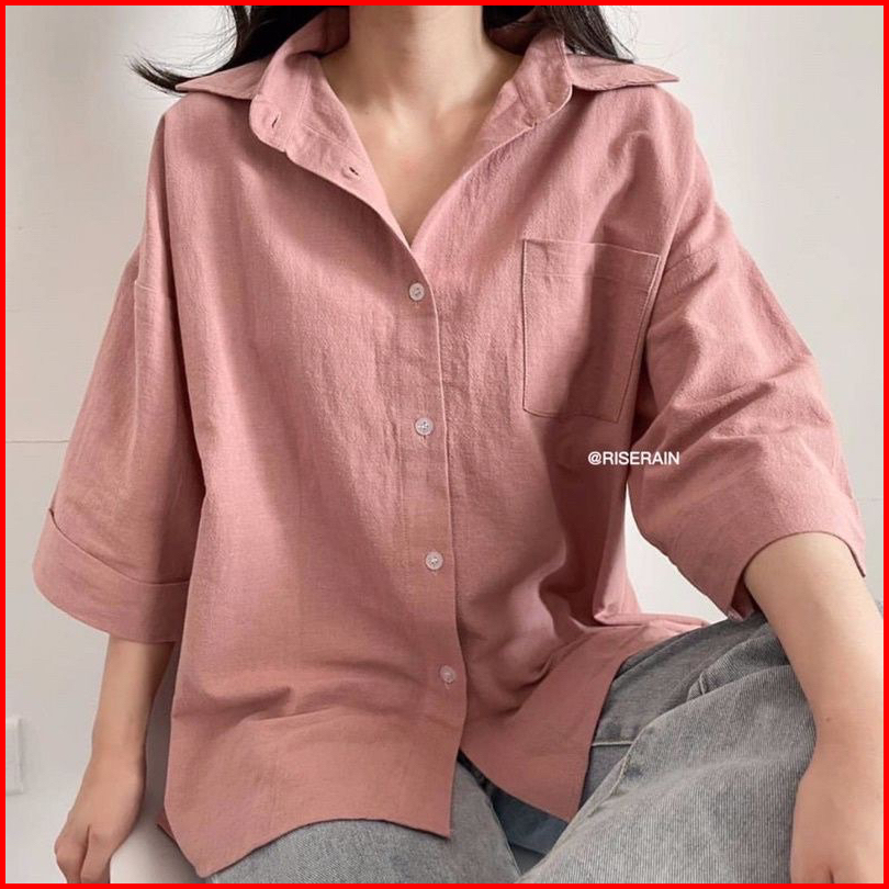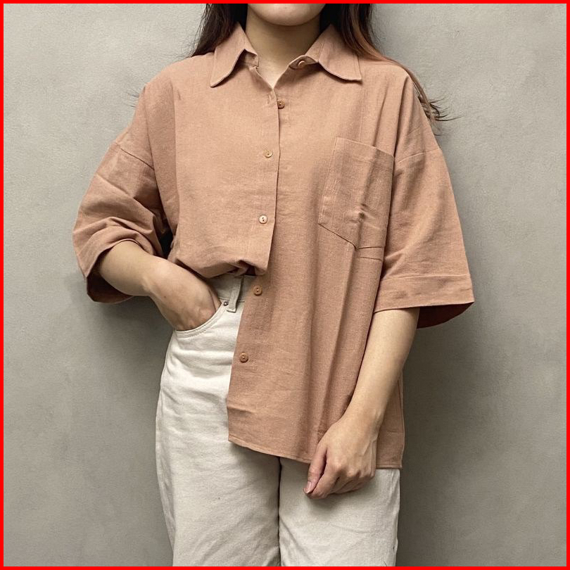 Kemeja Linen Single Pocket - Oversized Shirt Linen - Atasan Wanita 02.20