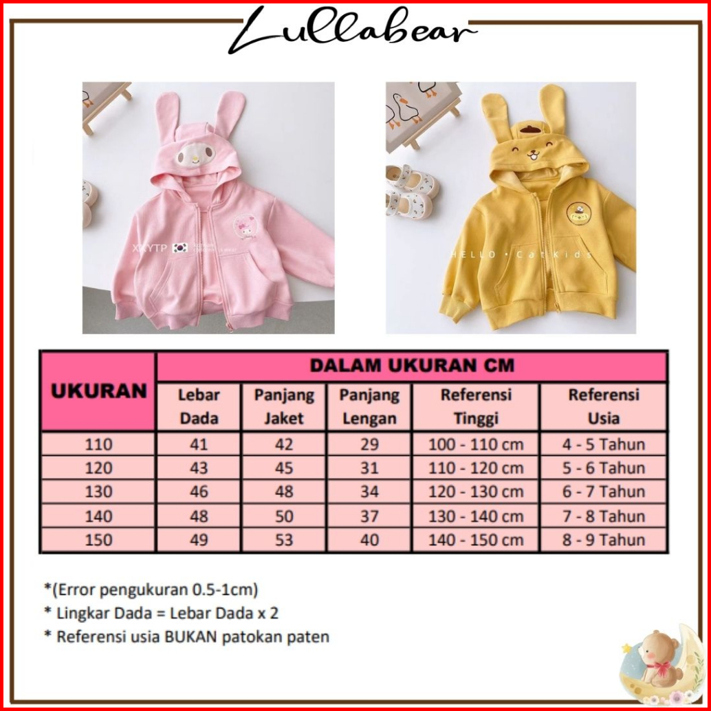 Lullabear - Jaket Kaos Anak Motif Sanrio Melody Cinnamoroll Kuromi Purin Quick Dry