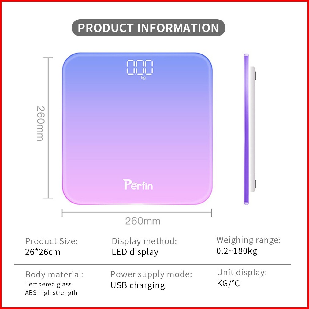 Perfin Pf02 Timbangan Badan Digital Dengan Ungu Gradien Timbangan Layar Led Digital 180kg