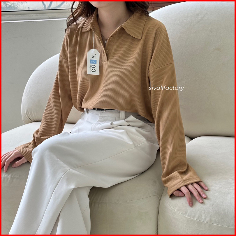 Sivali Rumi Top Polo Shirt Atasan Wanita Longsleeve Shirt Lengan Panjang 7733