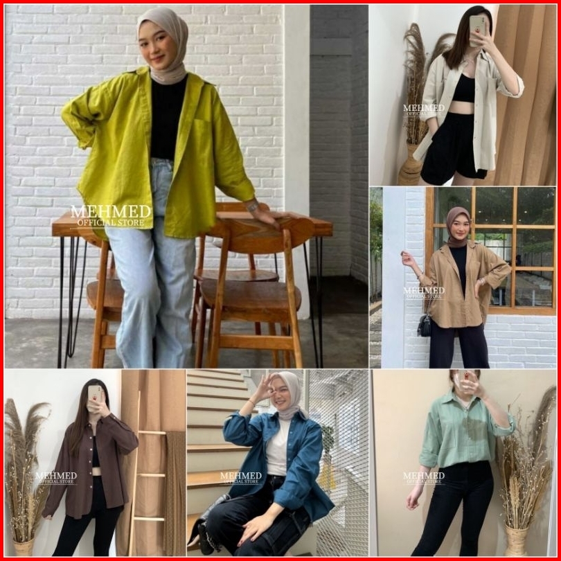 Kemeja Oversize Linen Wanita Alea Olivia Shirt High Quality Premium