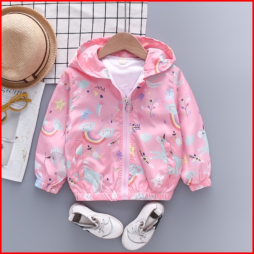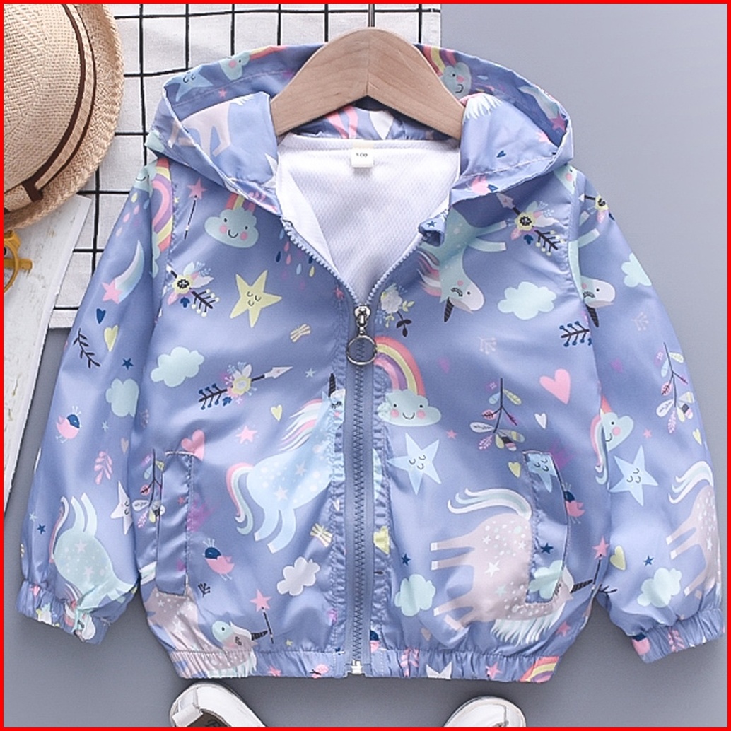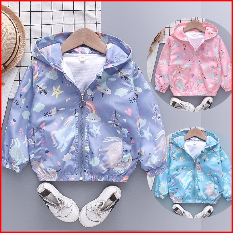 Jaket Anak Perempuan Jaket Parasut Motif Unicorn Jaket Sepeda Anak Anti Angin