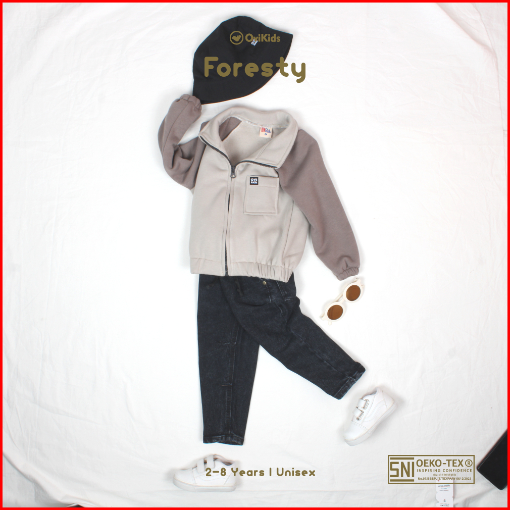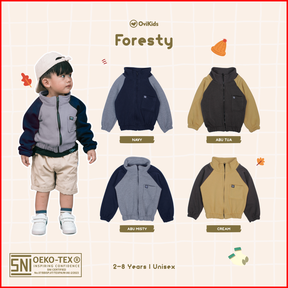 Ovikids Foresty - Jaket Anak Laki-laki Perempuan Outer Anak Turtle Neck Unisex 1-8 Tahun