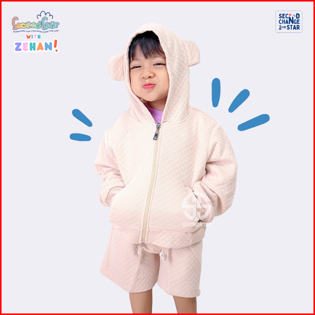 Second Star Jaket Hoodie Zipper Anak Luxebear Series Diamond Knitt Telinga 1-10 Tahun - Ssd01