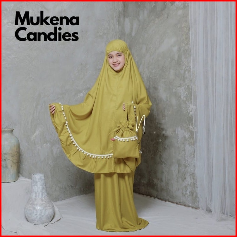 Ruliva-mukena Anak Candies Katun Mikro Renda Pompom Anak Tanggung Dan Standar Mukena Anak Prempuan