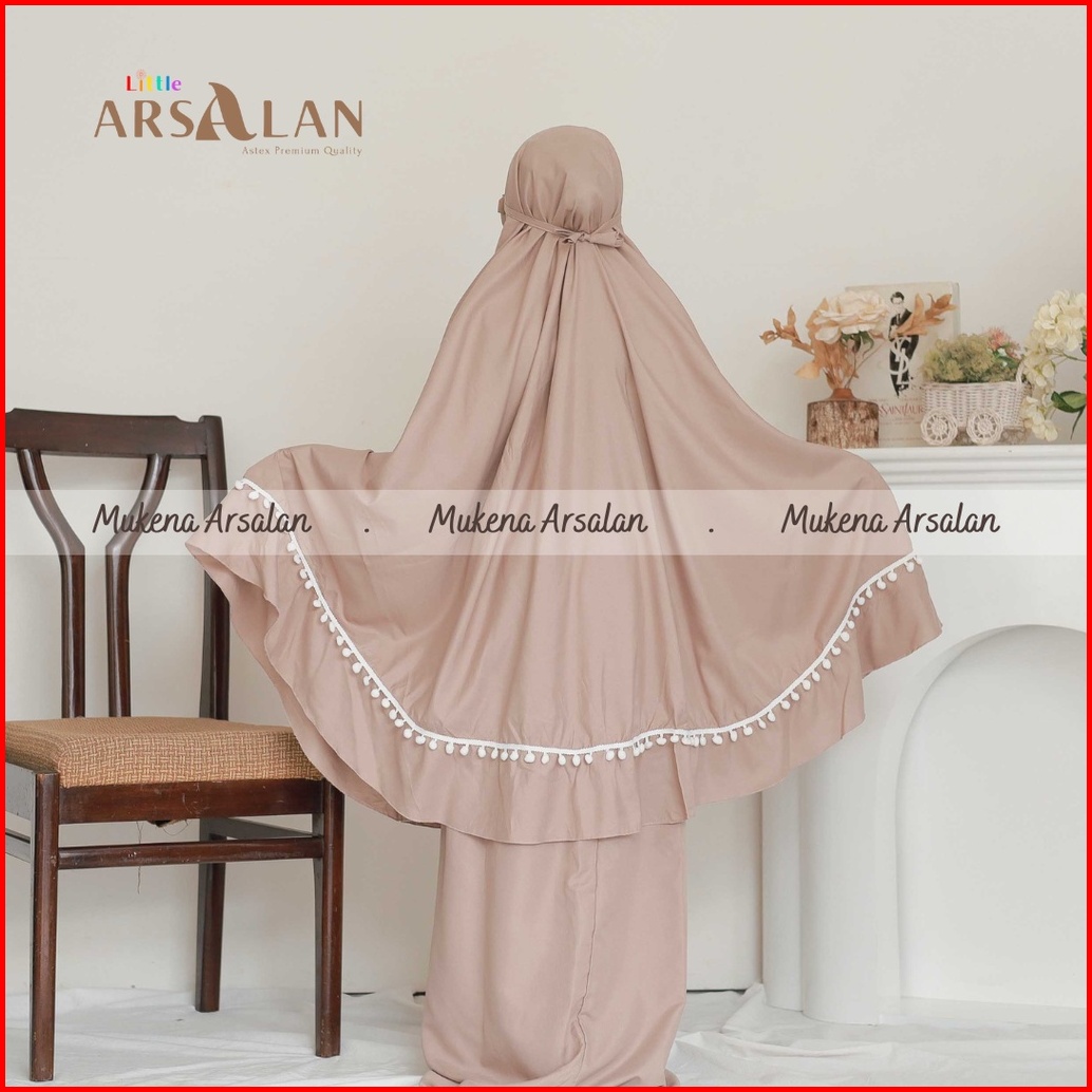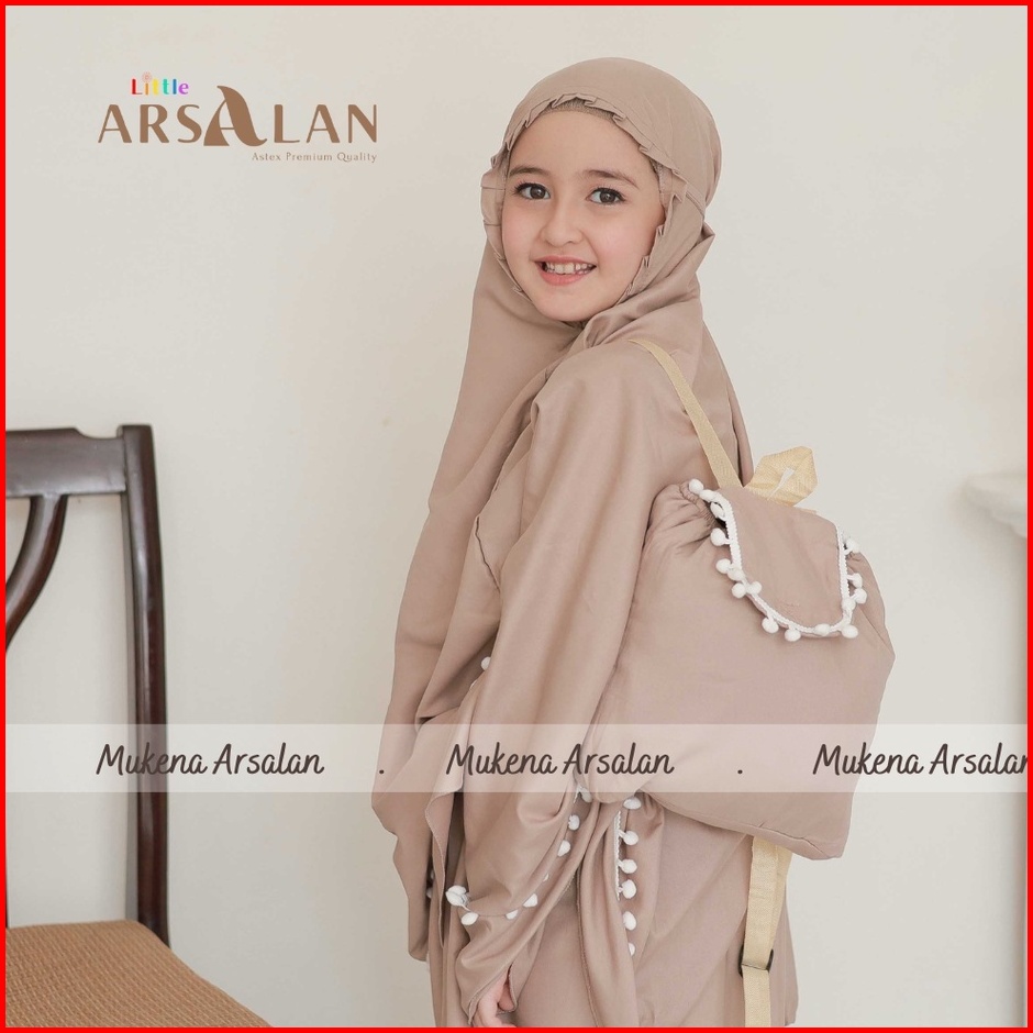 Mukena Anak Pompom Polos Tas Ransel Gendong