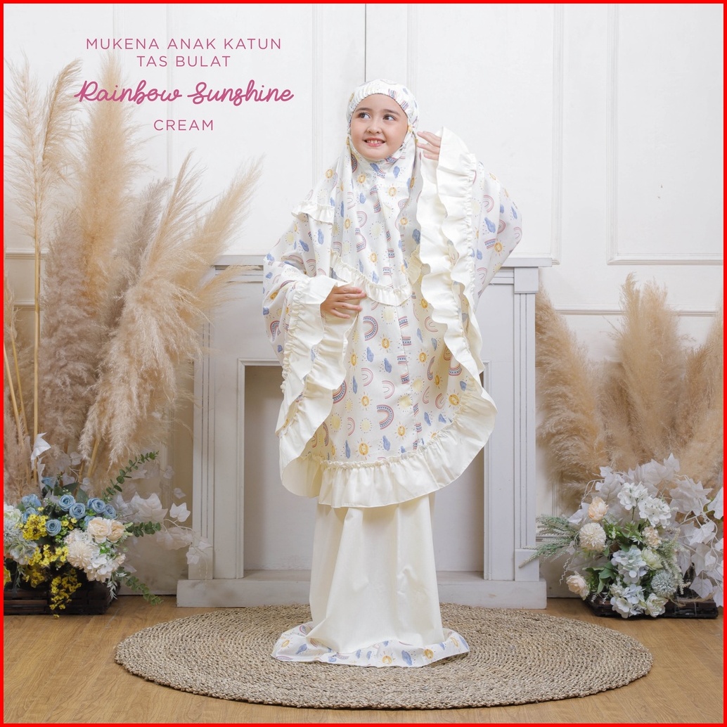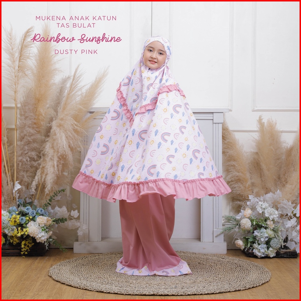 Pusat Mukena Tasik - Mukena Anak Katun Tas Bulat Motif Rainbow Sunshine