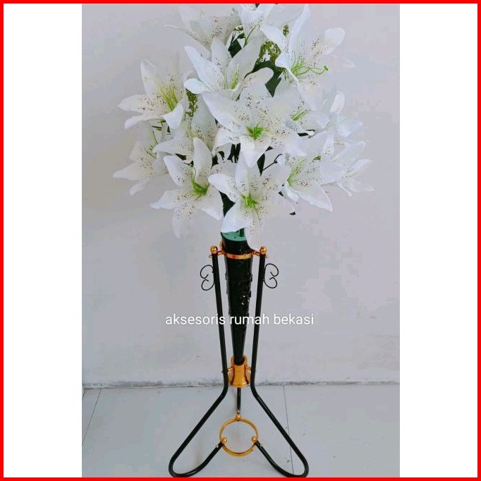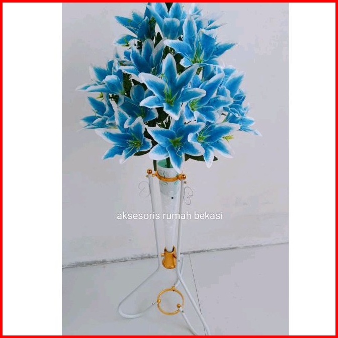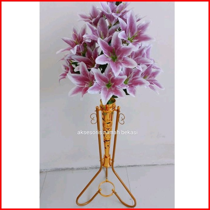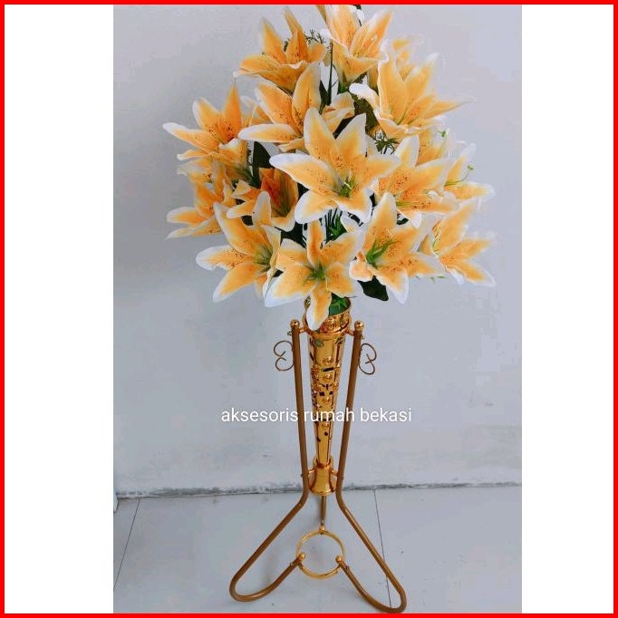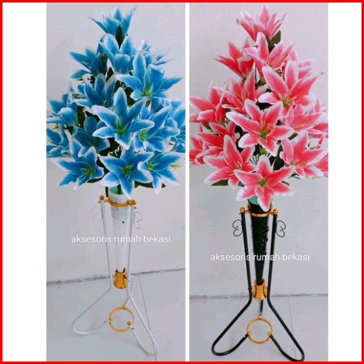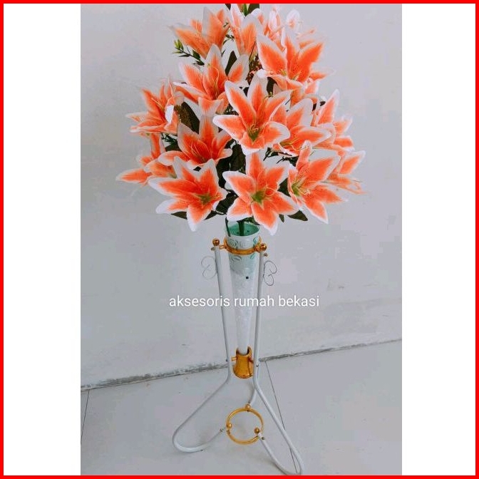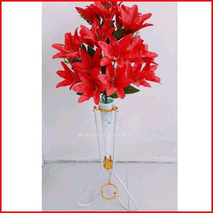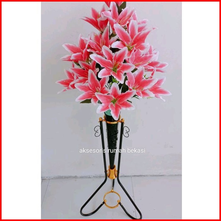 Rangkaian Bunga Amarilis Star Artificial 20 Kuntum Dengan Pot Standing Besi
