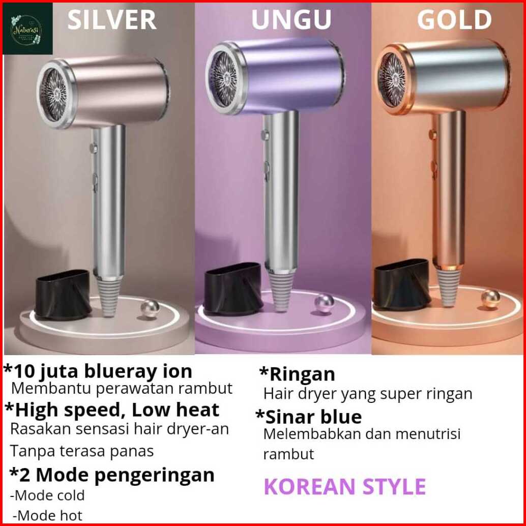 Hair Dryer Pengering Rambut Premium Ion Blueray Cahaya Biru Nutrisi Rambut High Speed
