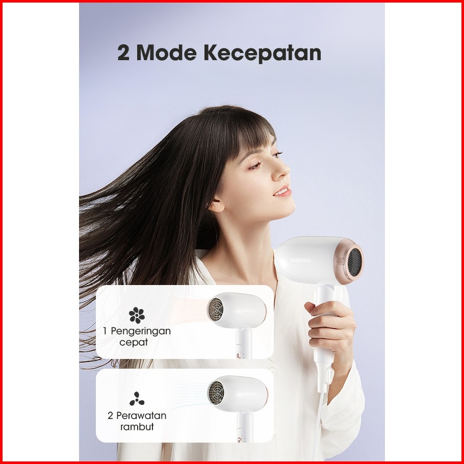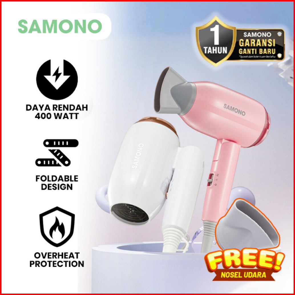 Samono Hair Dryer Lipat Compact Low Watt Pengering Rambut Travel Garansi 1 Tahun Sw-hd02