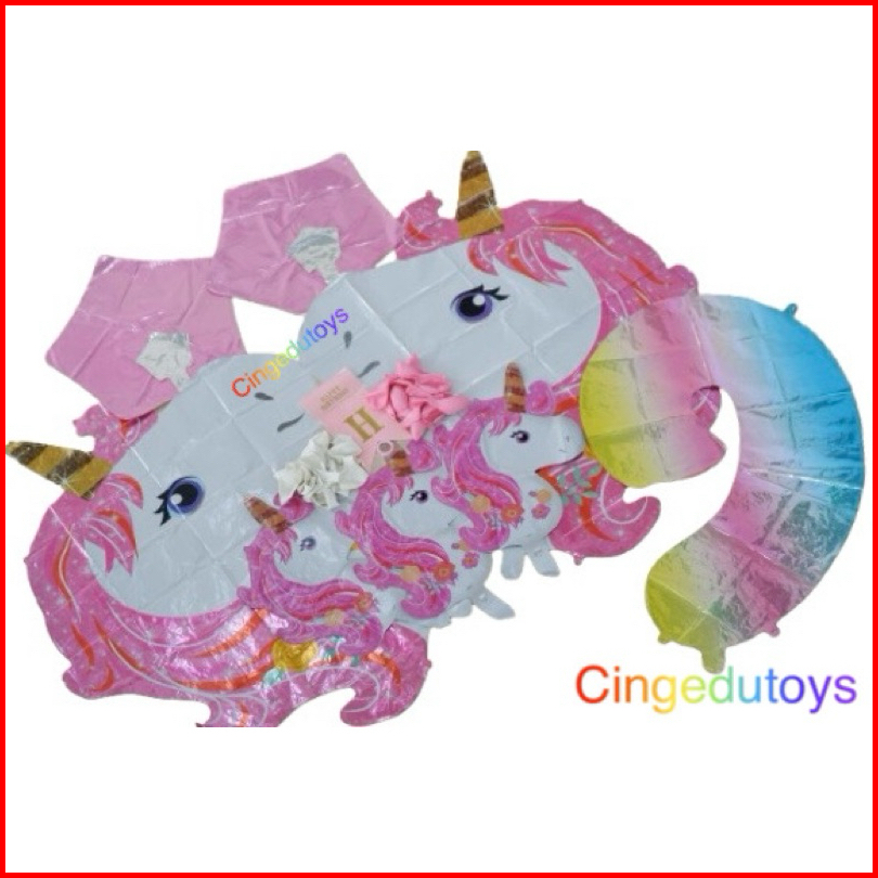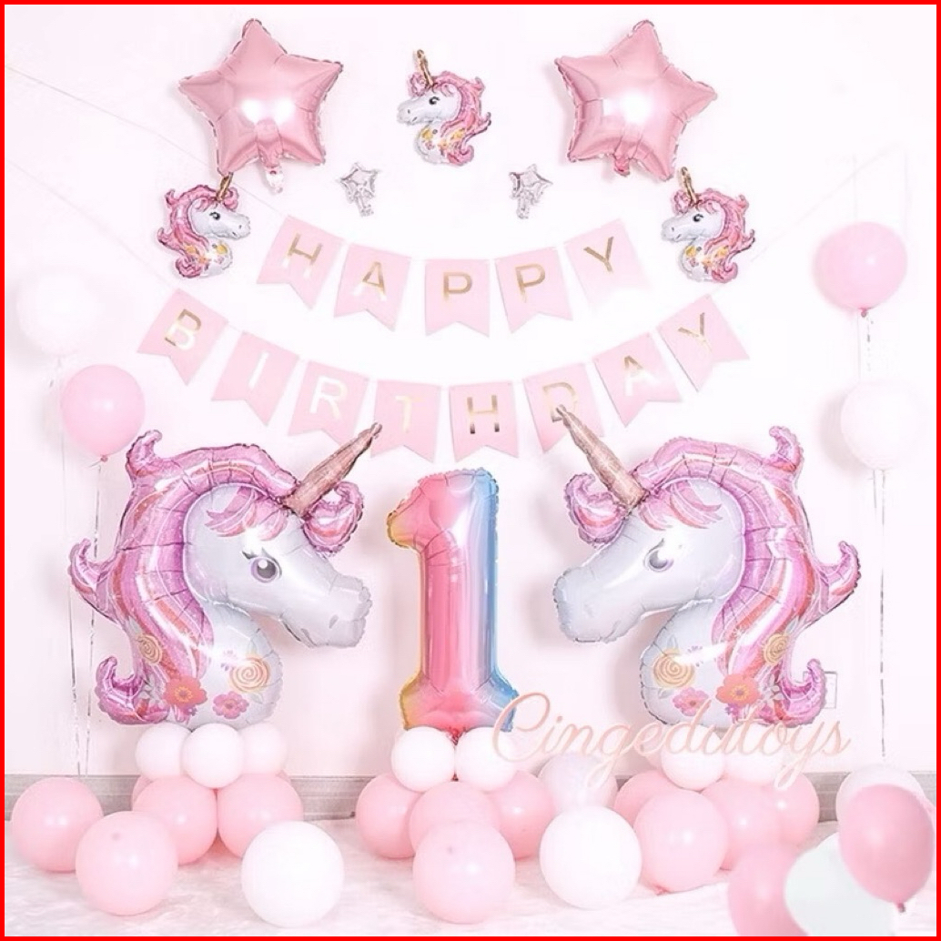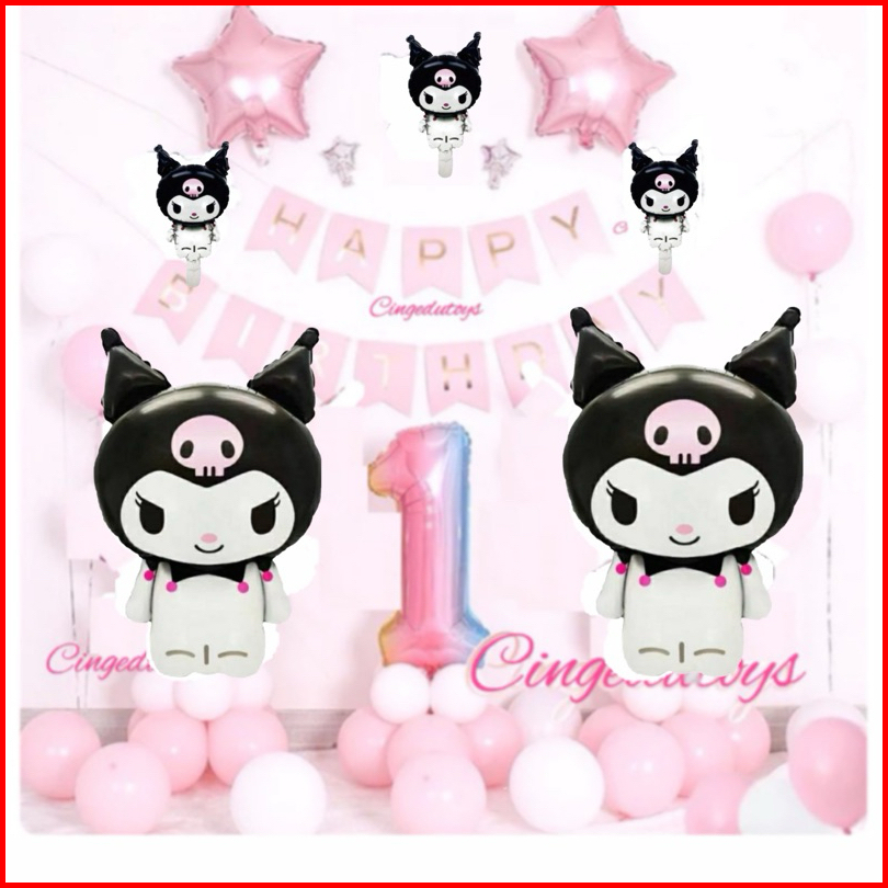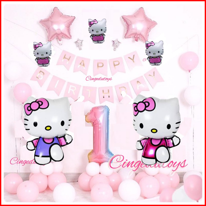 Paket Set Balon Dekorasi Ulang Tahun Anak Tema Kucing Pony Unicorn Mermaid Minnie Mouse Kuromi My Melody Hello Kitty Pin