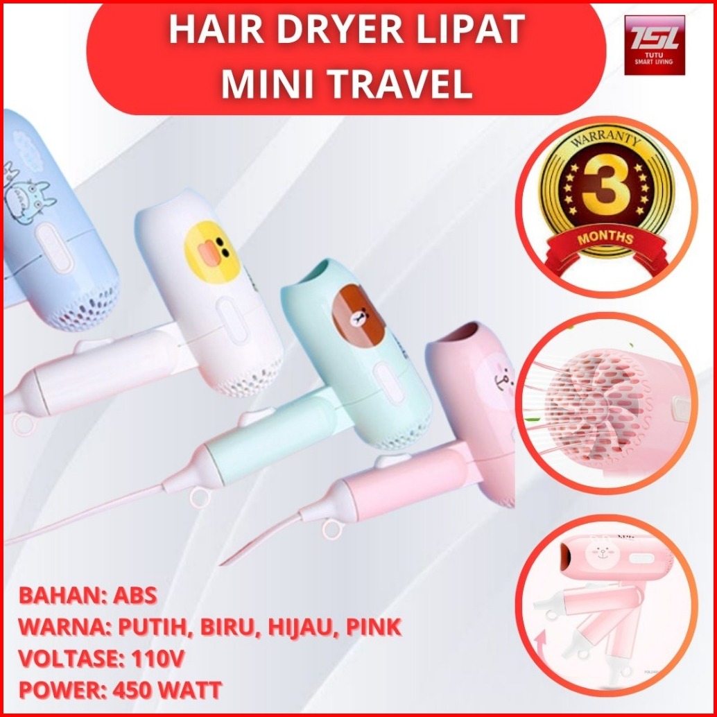 Tutu Hair Dryer Lipat Mini Hair Dryer Rambut Gw-6003 Garansi 3 Bulan Pengering Rambut Karakter Imut