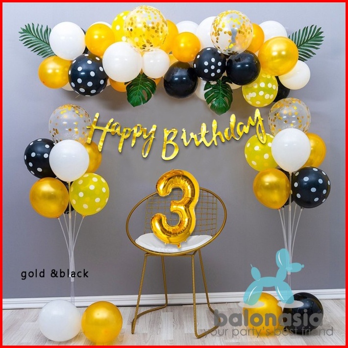 Balonasia Set Dekorasi Ulang Tahun Garland Fancy Hitam Chrome