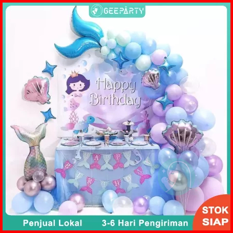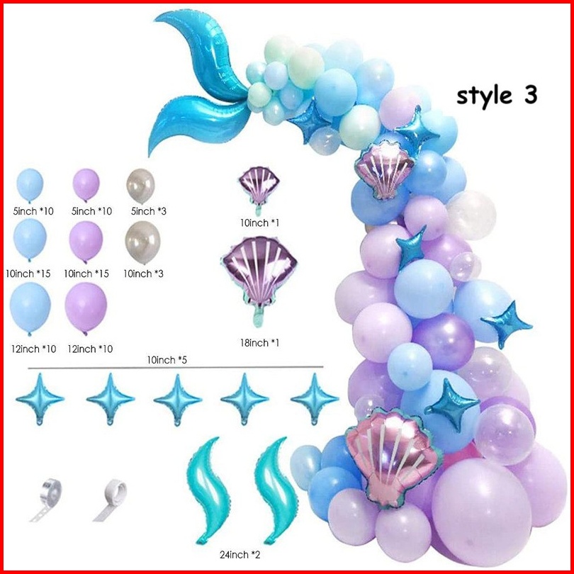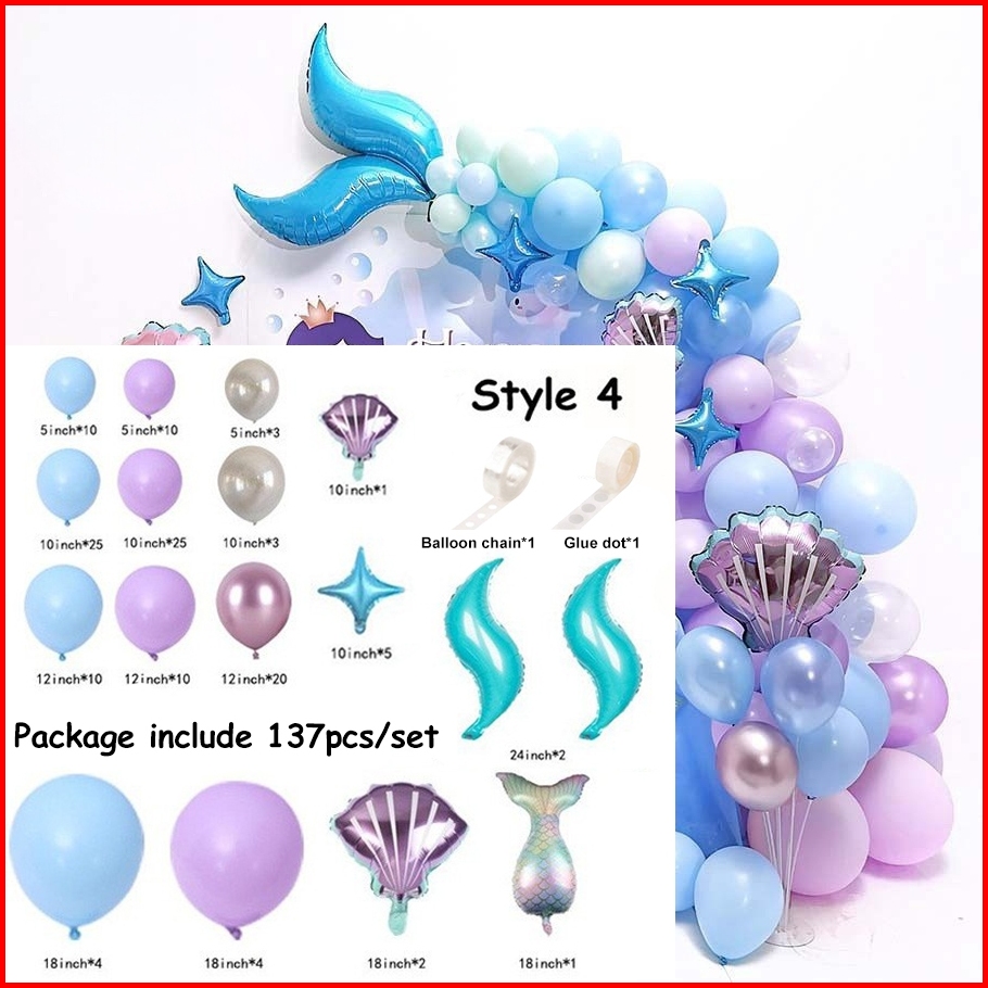 137 Pcs Putri Duyung Balon Bawah Air Balon Ekor Garland Dekorasi Pesta Ulang Tahun Balon Anak-anak