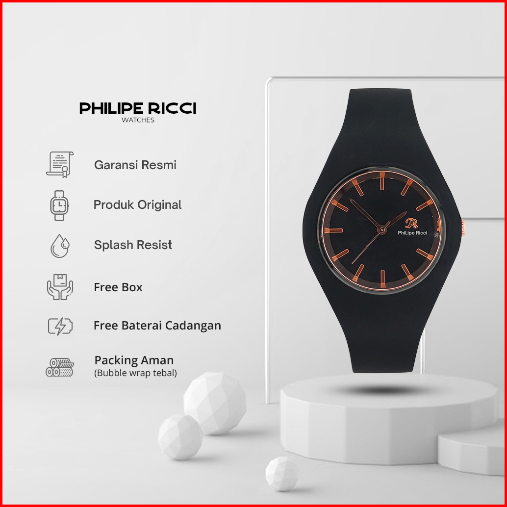 Philipe Ricci Jam Tangan Wanita Kecil Original Cewek Analog Strap Karet Tali Rubber Diameter Bulat Model Simpel Kekinian