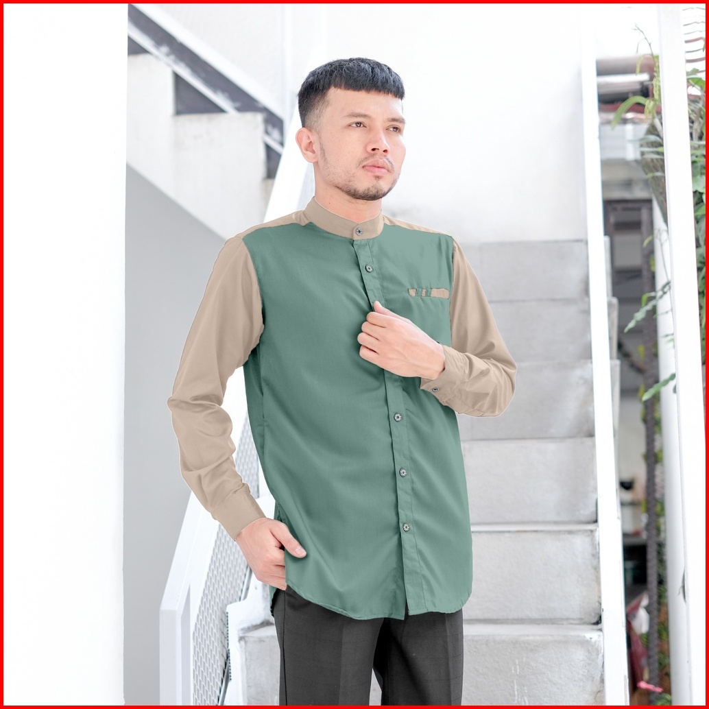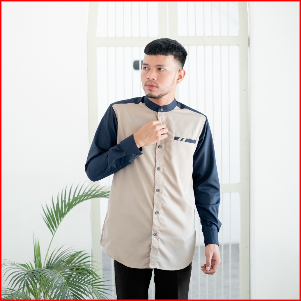 Kemeja Koko Pria Lengan Panjang Bahan Toyobo Premium Model Baju Koko Pria Kombinasi 2 Warna Raglan