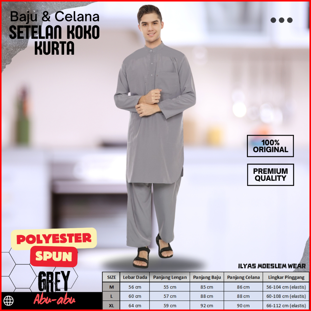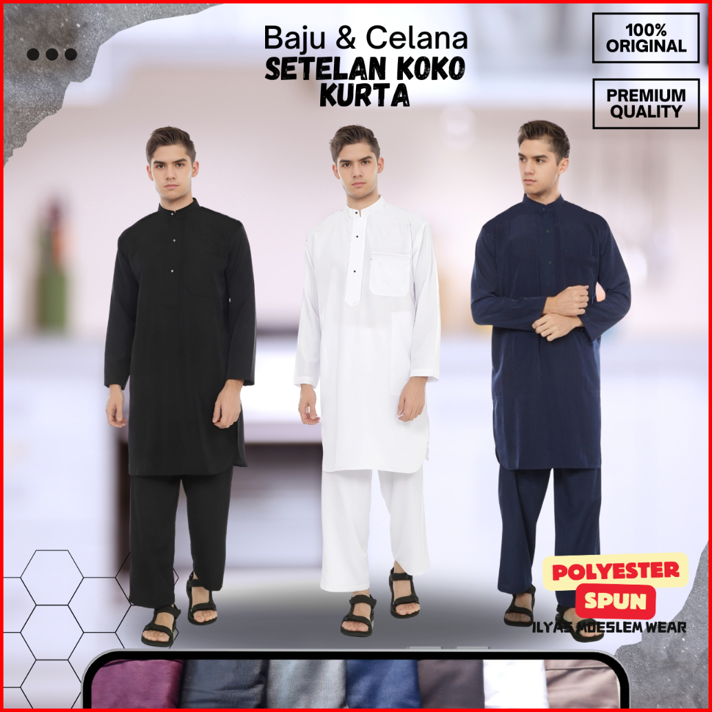 Setelan Pakistan Baju Dan Celana Pria Dewasa Muslim - Koko Setelan Turki - Baju Koko Kurta Pakistan - Koko Polos