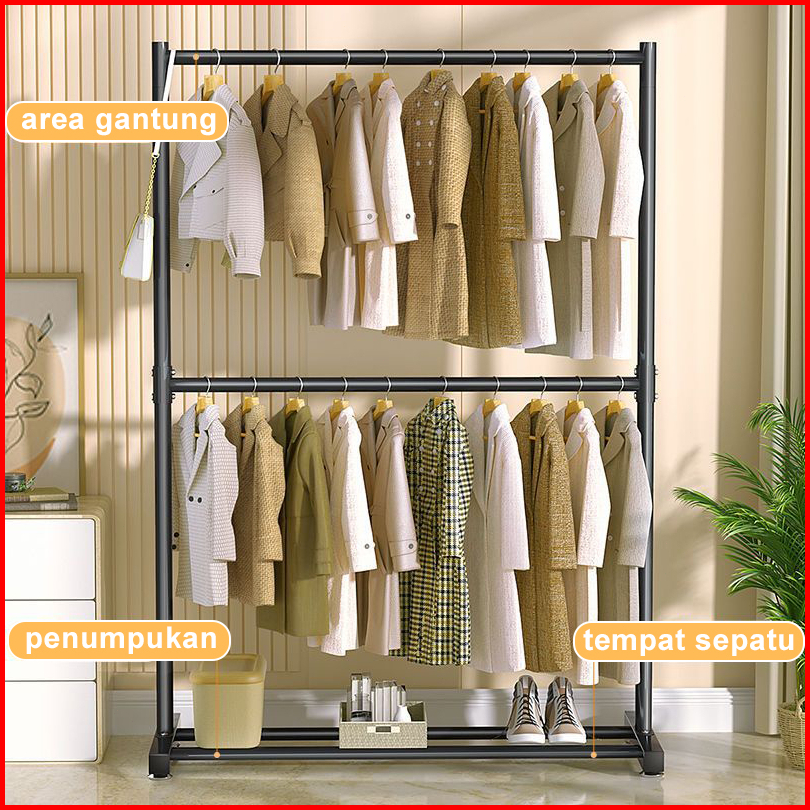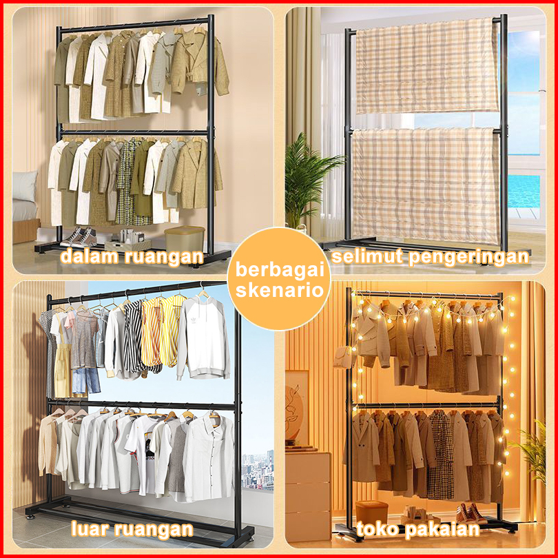 Gantungan Baju Besi Rak Baju Gantung Berdiri Gawang Baju Estetik Stabil Luar Ruangan Jemuran Baju Rak Baju Bayi Lemari A