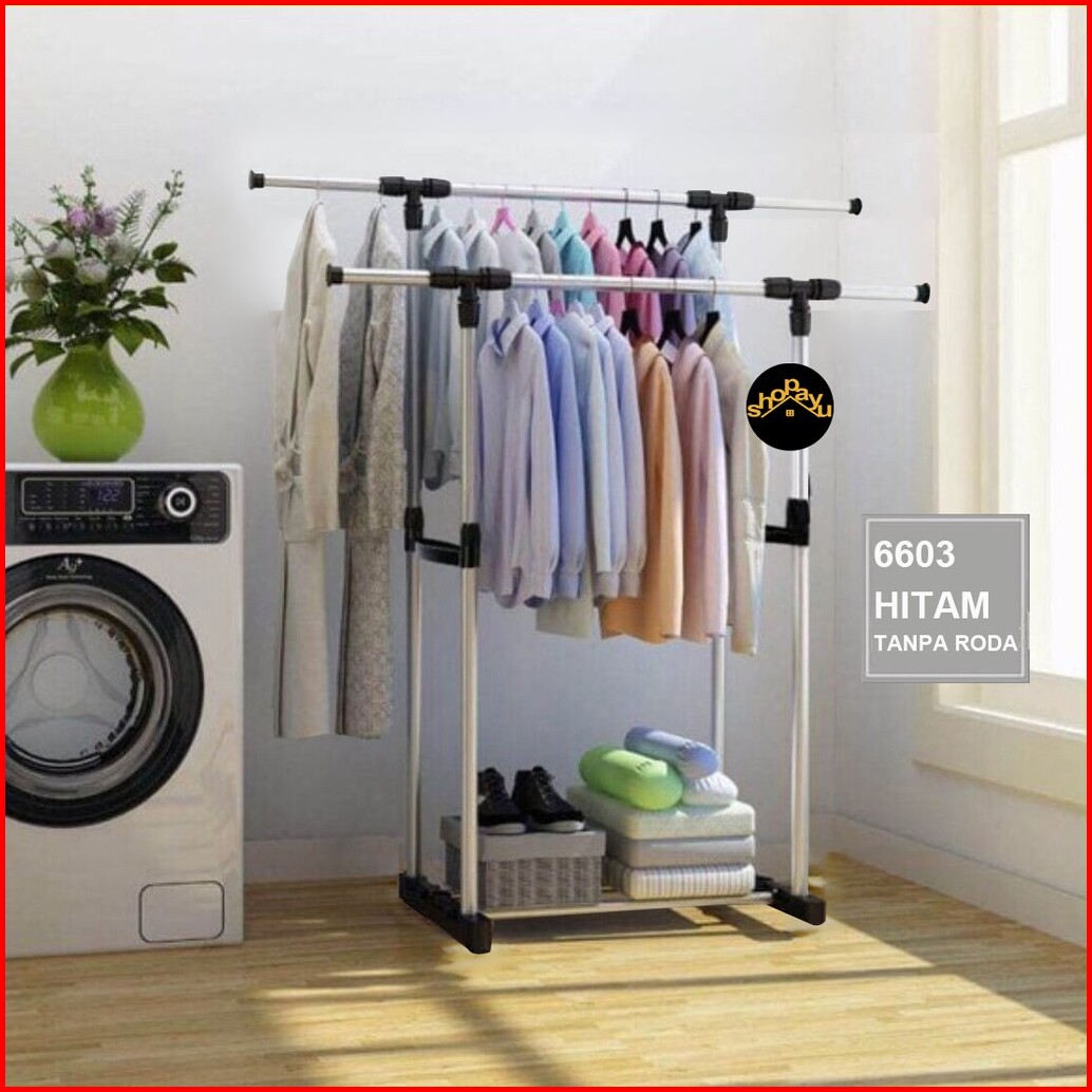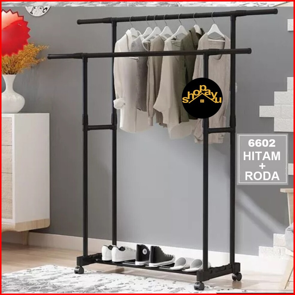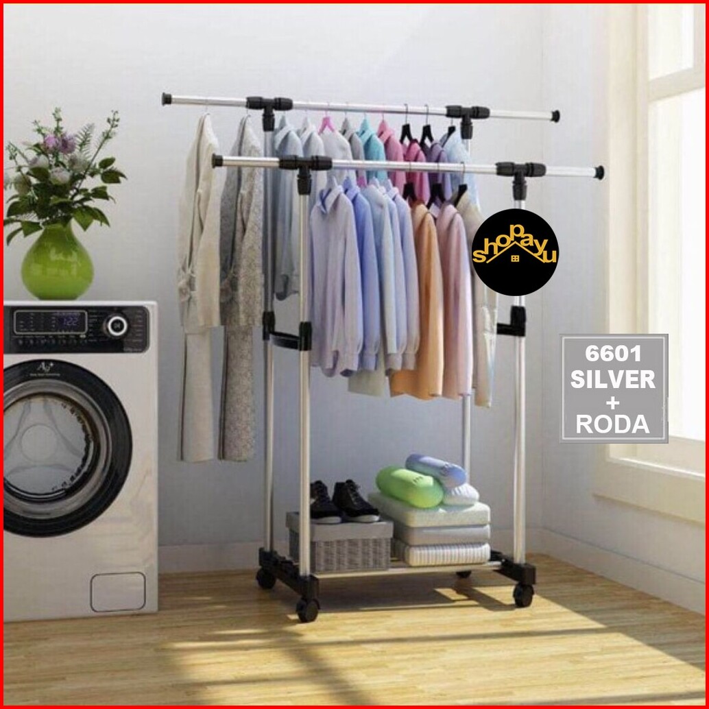 Stand Hanger Double Sisi Rak Serbaguna Dgn 4 Roda