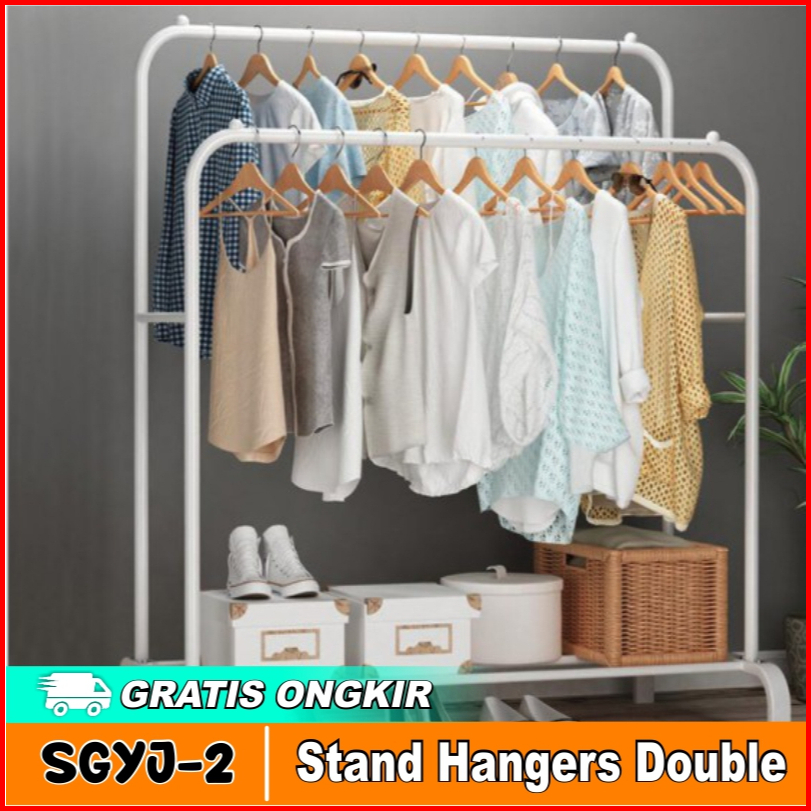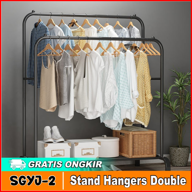 Stand Hanger Rak Gantungan Baju Jemuran Besi Double Rack Jemuran Lipat Serbaguna