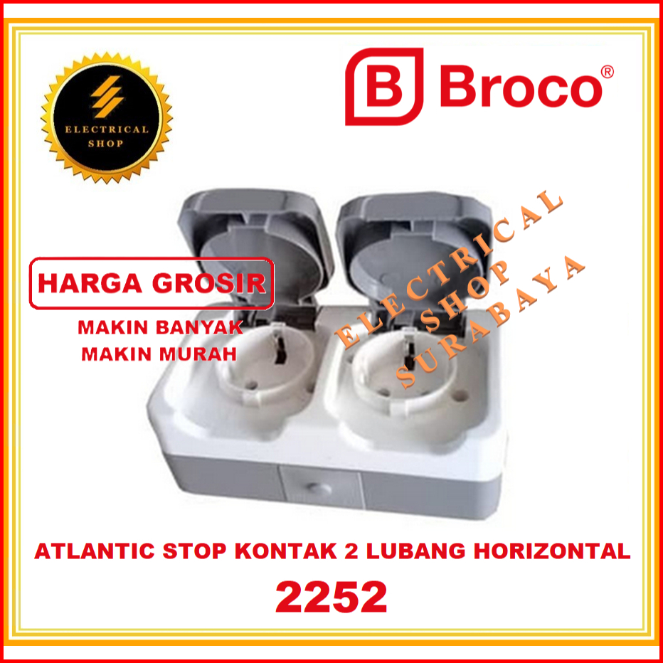 Grosir Broco Atlantic Ob Stop Kontak Arde 2 Gang Lubang Horizontal 2252 Tahan Air Waterproof Ip44