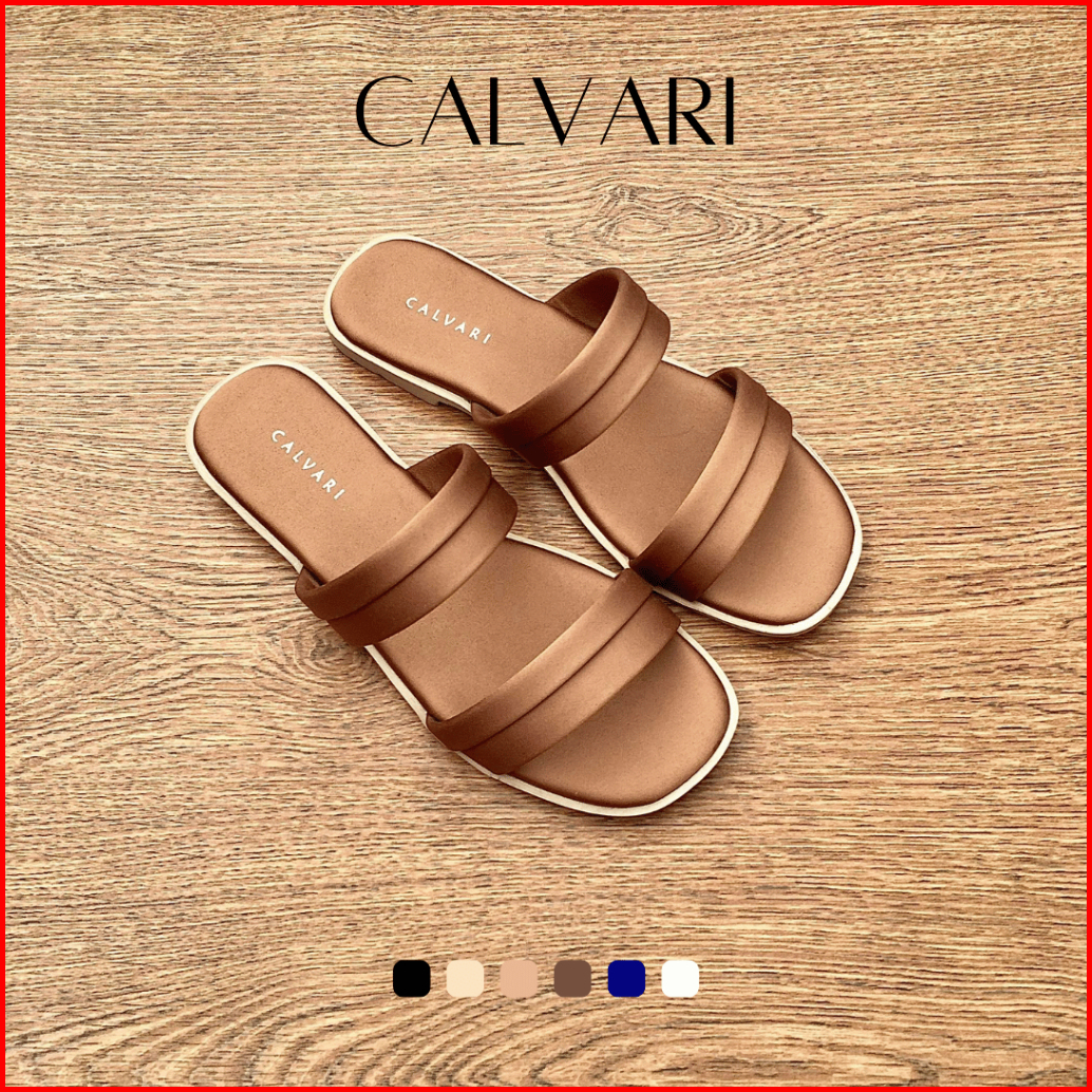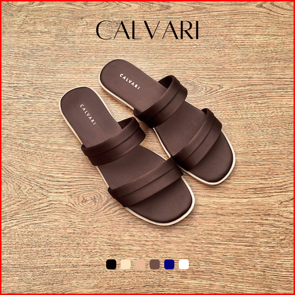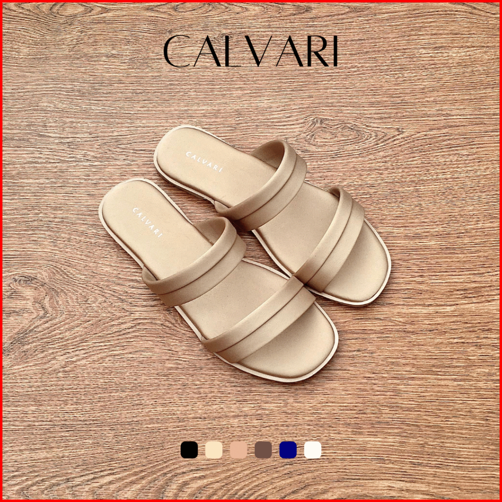 Calvari - Bella Sandal Wanita Korea Teplek Casual Kekinian Size 36 - 40 Sendal Flat Cewek Kasual