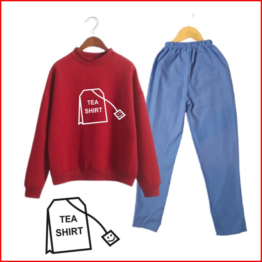 Clstore Baju 1 Pasang Sweater Dan Celana Katun Teashirt