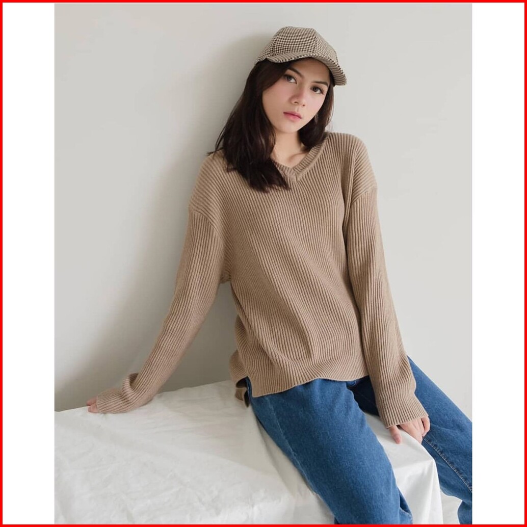 Baju Rajut Boxy V-neck Viona
